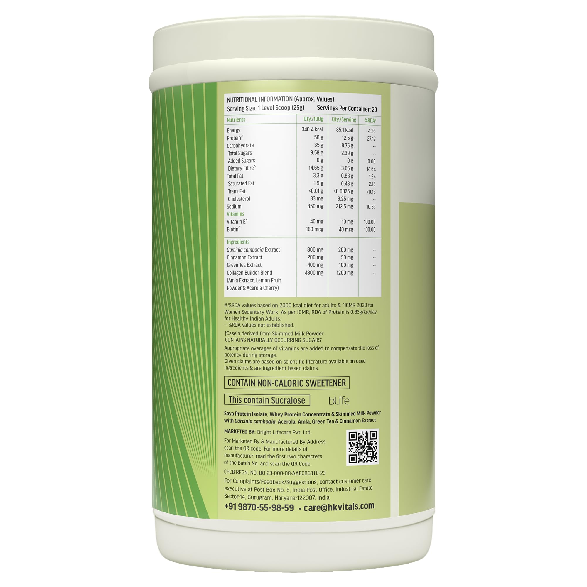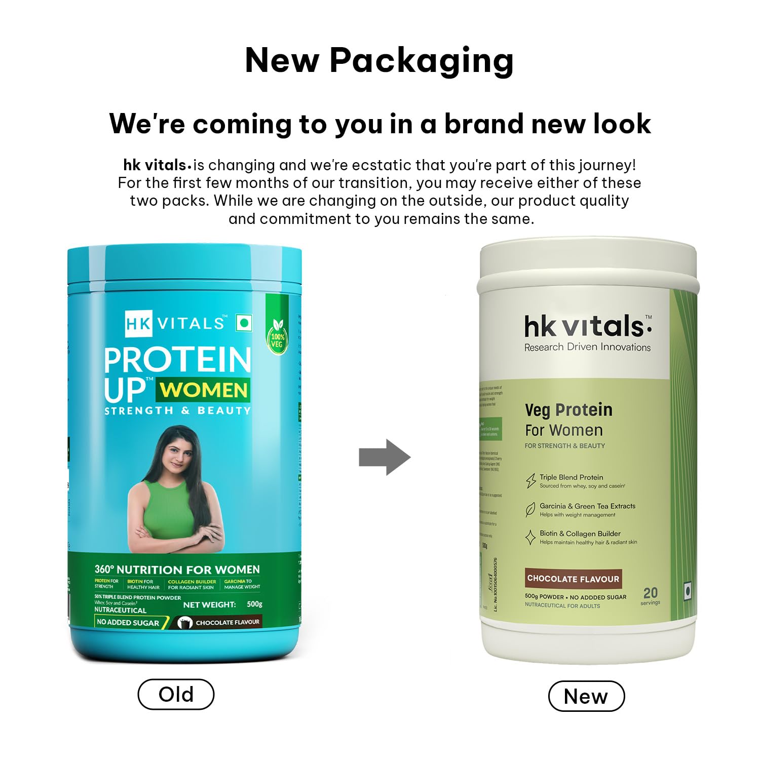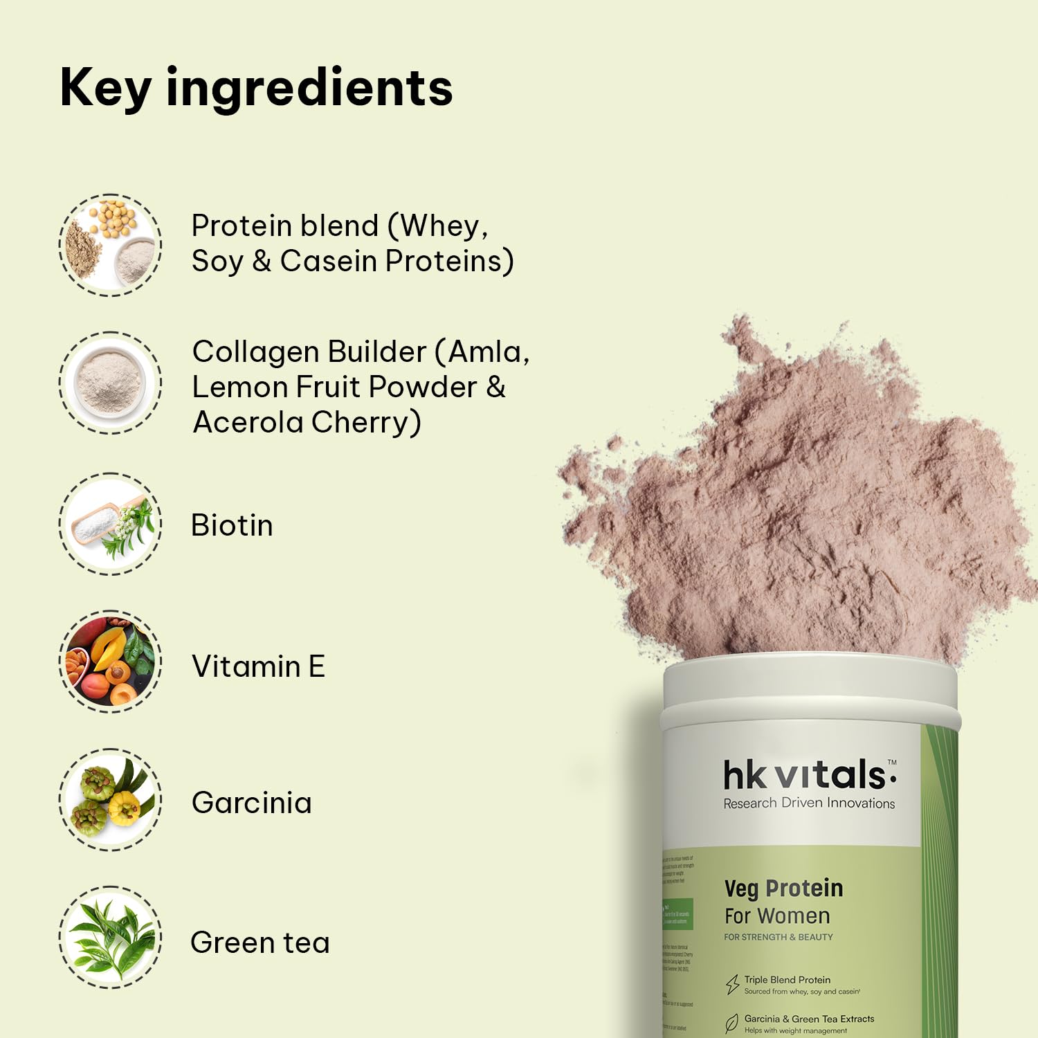 HealthKart hk vitals Protein For Women (Chocolate 500g) | Vegetarian Protein with Soy Whey Collagen Builder Blend Biotin Garcinia & Green Tea | For Strength & Beauty
