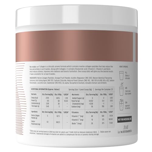 Collagen and biotin supplements complement each other. Get this HealthKart HK Vitals combo that includes Skin Radiance Collagen and Biotin. HealthKart HK Vitals Skin Radiance Collagen is a comprehensive formula for skin hair and nail health. It contains TITAGEN-Fish Collagen Peptide Hyaluronic acid Vitamin C Vitamin E and Biotin. It is available in a delicious orange flavour. The marine collagen content of HK Vitals Collagen (from the house of HealthKart) helps improve the firmness & elasticity of the skin. Hyaluronic acid which is natureâs moisturizer helps keep the skin soft and smooth. Potent antioxidants like Vitamin C and Vitamin E help improve skin glow and control free radical-induced skin damage. Further biotin included in this collagen supplement for men and women helps maintain nail and hair health through its role in keratin protein synthesis. HealthKart HK Vitals Biotin is a Vitamin B7 dietary supplement that assures your body of the required dosage of Vitamin B7 which is essential for keratin synthesis and building keratin infrastructure in your body. Biotin helps in hair growth provides radiance to the skin and fights nail brittleness. It metabolises fats and protein to provide energy and fight fatigue. Consume one biotin tablet daily or as suggested by your dietician.