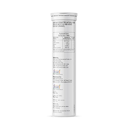 N-acetyl L-cysteine (NAC) is the solid form of the non-essential amino acid L-cysteine. The health benefits come from the fact that amino acids help the body make protein. Introduces first-rate antioxidant guide inside the frame in addition to NAC. It is 100% vegetarian. Consuming adequate NAC is important for a range of health reasons â as well as replenishing the foremost powerful antioxidant in your body glutathione free radicals can cause oxidative damage to your liver but n acetyl cysteine is necessary for the regeneration of glutathione a potent antioxidant that binds with and neutralizes free radicals. NAC is the stable form of the amino acid L-cysteine and works to stabilize the formation of protein structures which supports cellular health. [Ingredients:] N-Acetyl Cysteine 600mg [Suggested Use:] 1. Drop a tablet in 200ml of Water. 2. Wait till the effervescent tablet dissolves completely stirring not required. 3. Enjoy the Health Drink. 4. Replace cap tightly after every use to avoid tablet degradation.