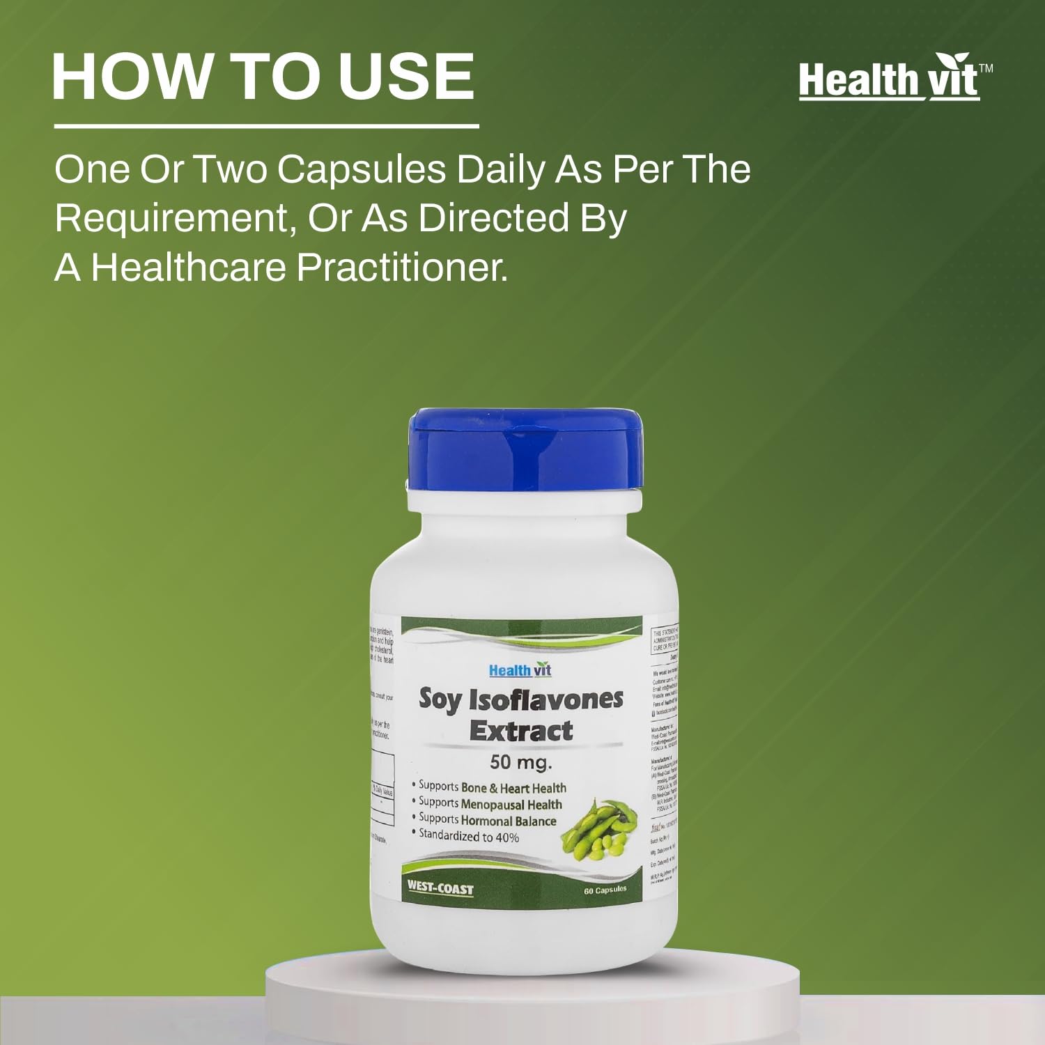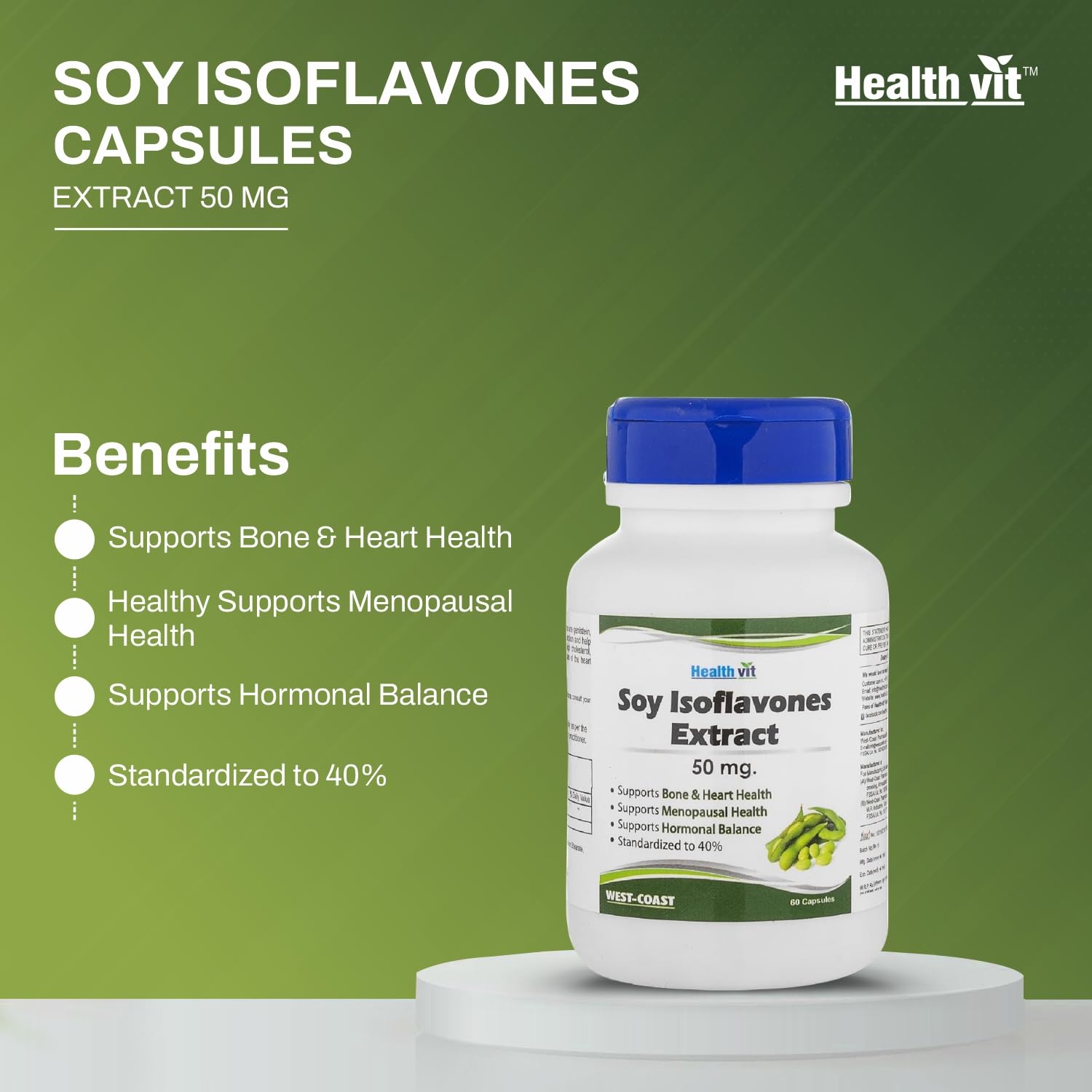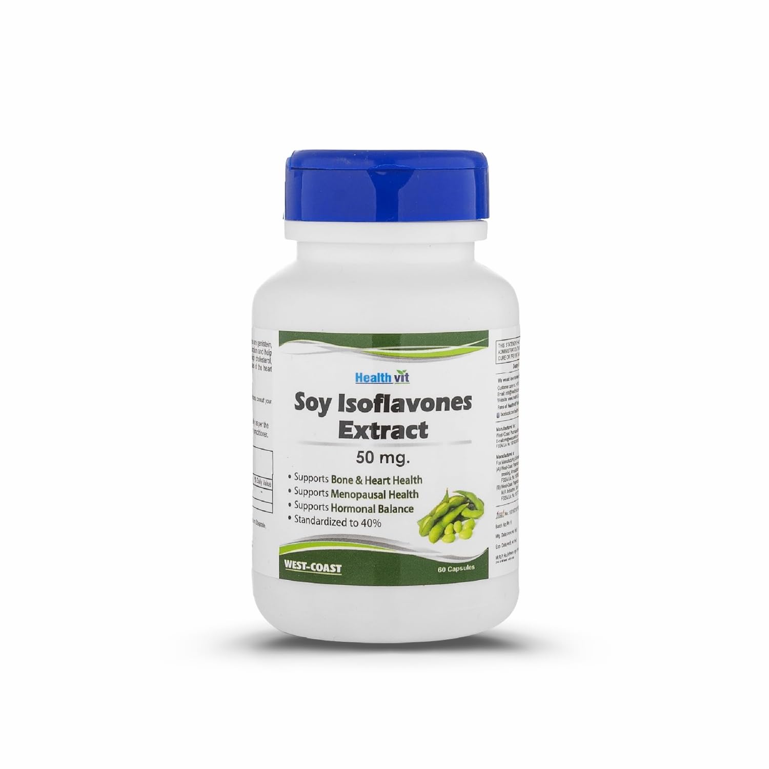 Healthvit the three major isoflavones found in soybeans are soybeans are genistein daidzein and glycitein may inhibit bone resorption and help stimulate bone formation. Soy is used for high cholesterol high blood pressure and preventing diseases of the heart and blood vessels. Supports hormonal balance. Supports menopausal health. Supports bone and heart health. Standardized to 40 percent.