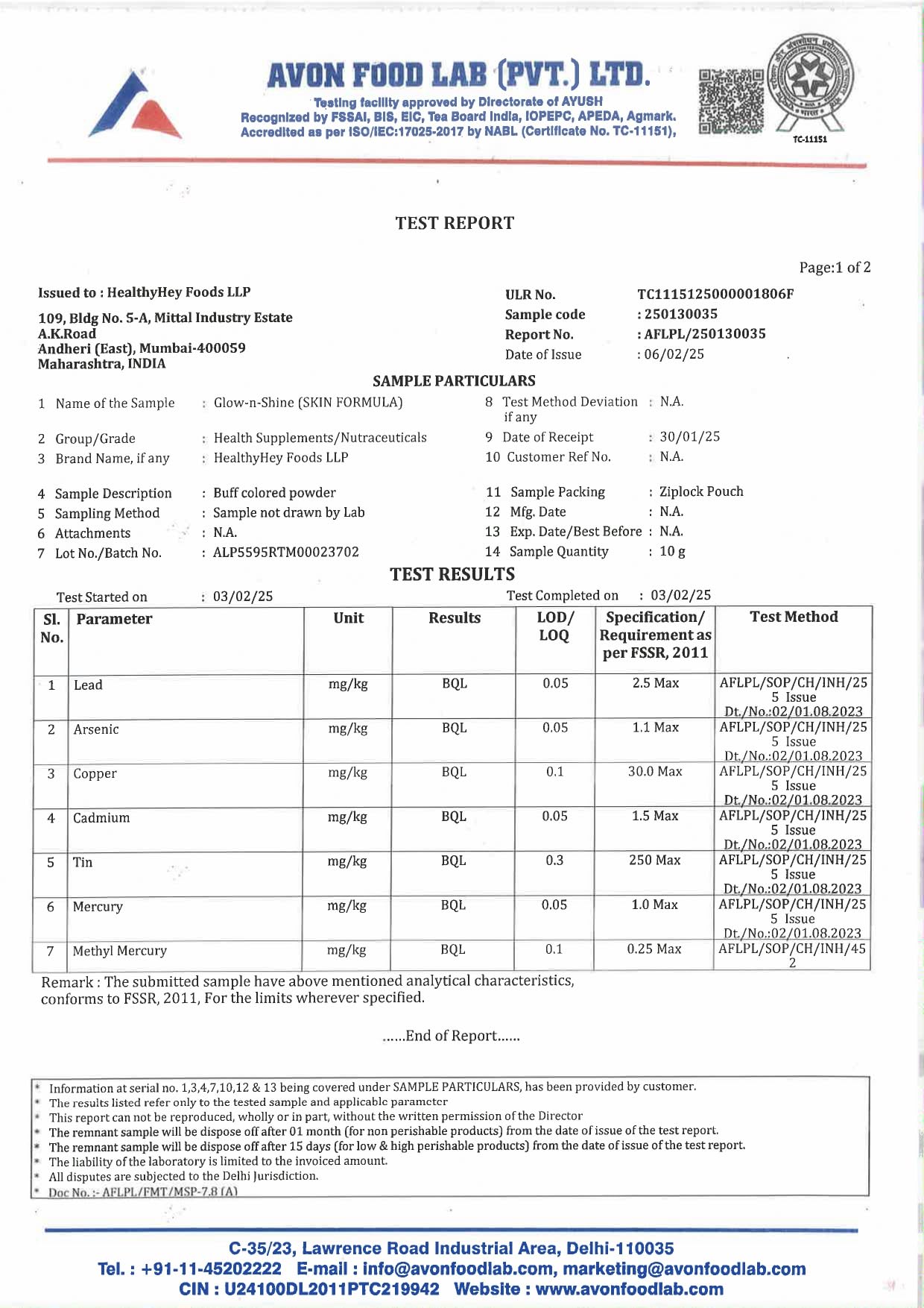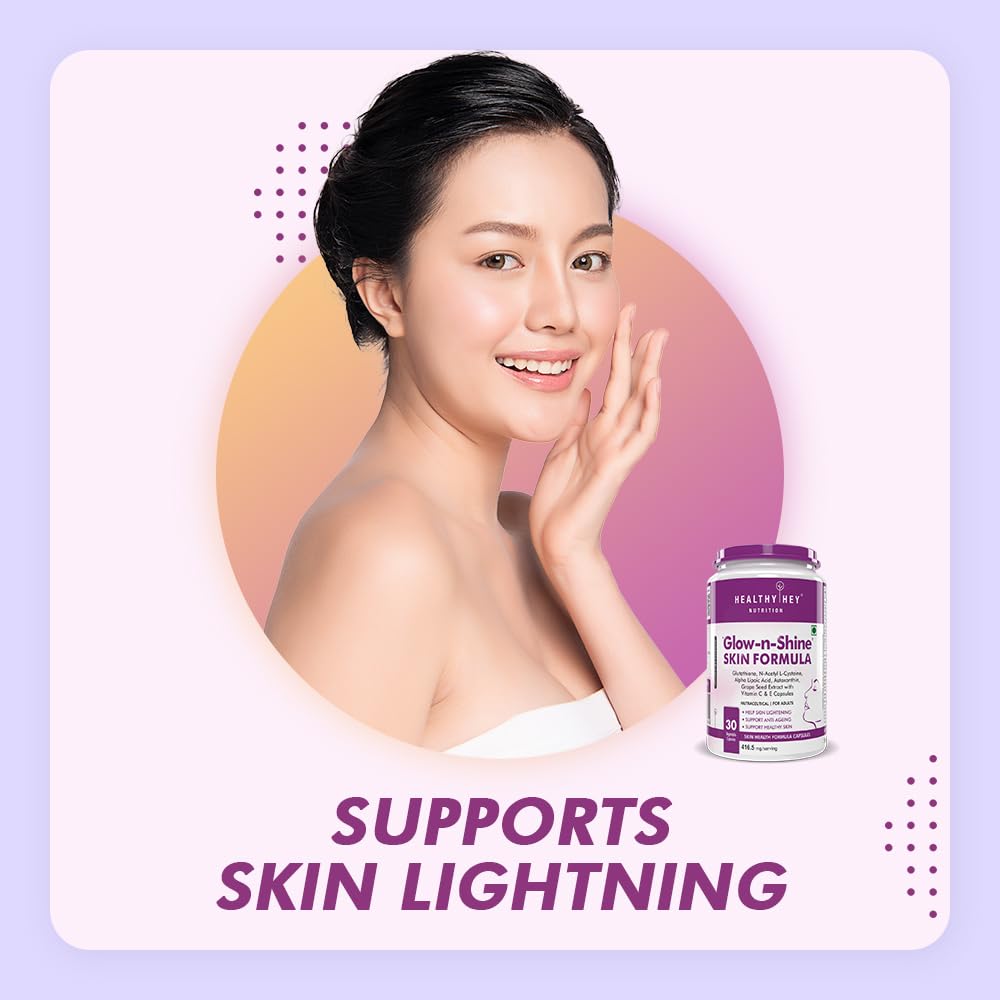 HealthyHey Nutrition Glow-n-Shine| Skin Health Formula | 30 Vegetable Capsules