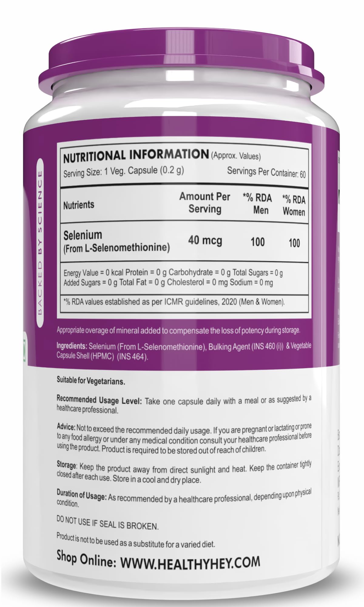 HealthyHey Nutrition Selenium Capsules 40mcg - Superior Absorption - 60 Vegetarian Capsules