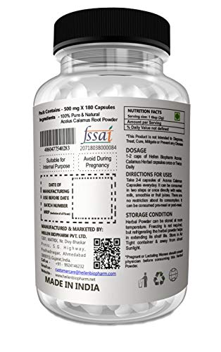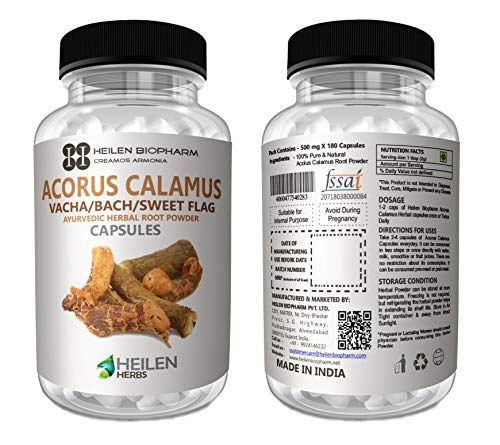 Heilen Biopharm Vacha/Sweet Flag/Acorus Calamus/Bach Powder 500 mg X 180 Capsules 90 grams