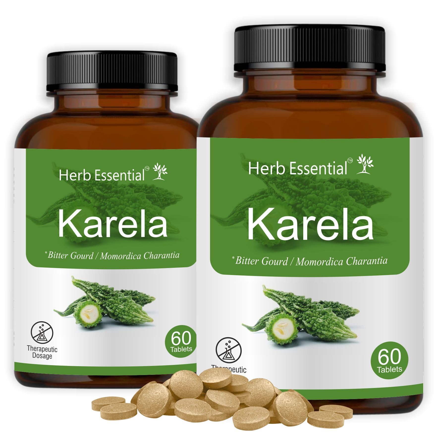 Herb Essential Karela (Bitter gourd) Tablets 500 mg60 Tablets (pack of 2)| Promotes Healthy Sugar Levels & Metabolic Wellness | Natural Blood Purifier | 100% Pure Bitter Gourd Extracts