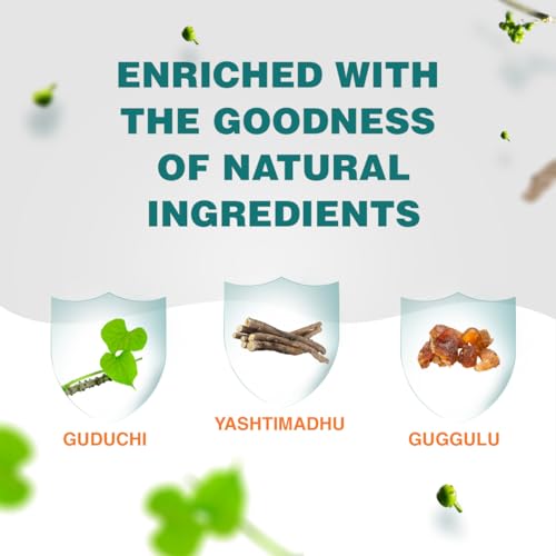 Ingredients:-Balsamodendron Mukul: 0.324g Tinospora cordifolia: 98mg Rubia cordifolia: 64mg Emblica officinalis: 32mg Moringa plerygosperma: 32mg Glycyrrhiza glabre: 12mg.