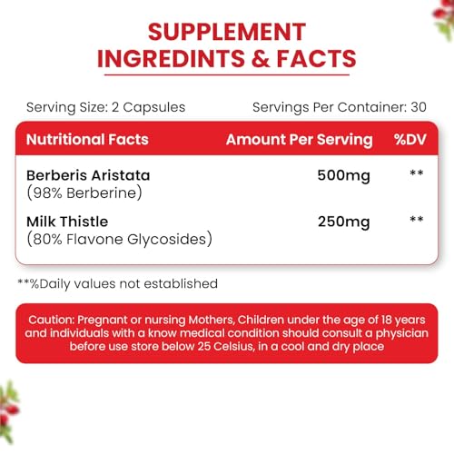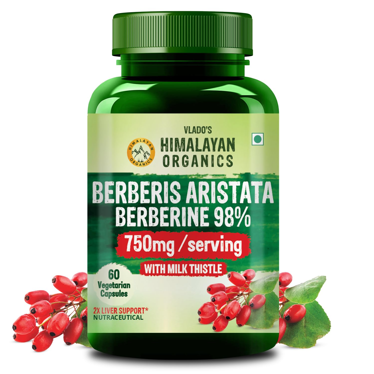 Himalayan Organics Berberis Aristata Berberine 95% with Milk Thistle for 2X Liver Support - 60 Veg Caps.s