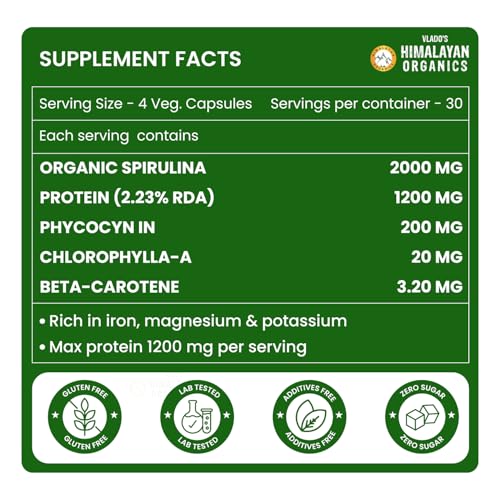 Organic Spirulina - 2000Mg Per Serving - Certified Organic - 120 Veg Caps.s