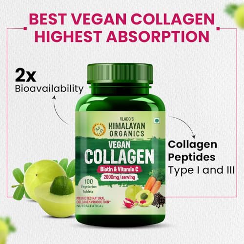 • BOOST NATURAL COLLAGEN PRODUCTION: Himalayan Organics Vegan Collagen Tablet is a mindfully crafted vegan-friendly way to build collagen. This collagen supplement utilizes the power of plants to support your body's natural ability to produce and maintain h