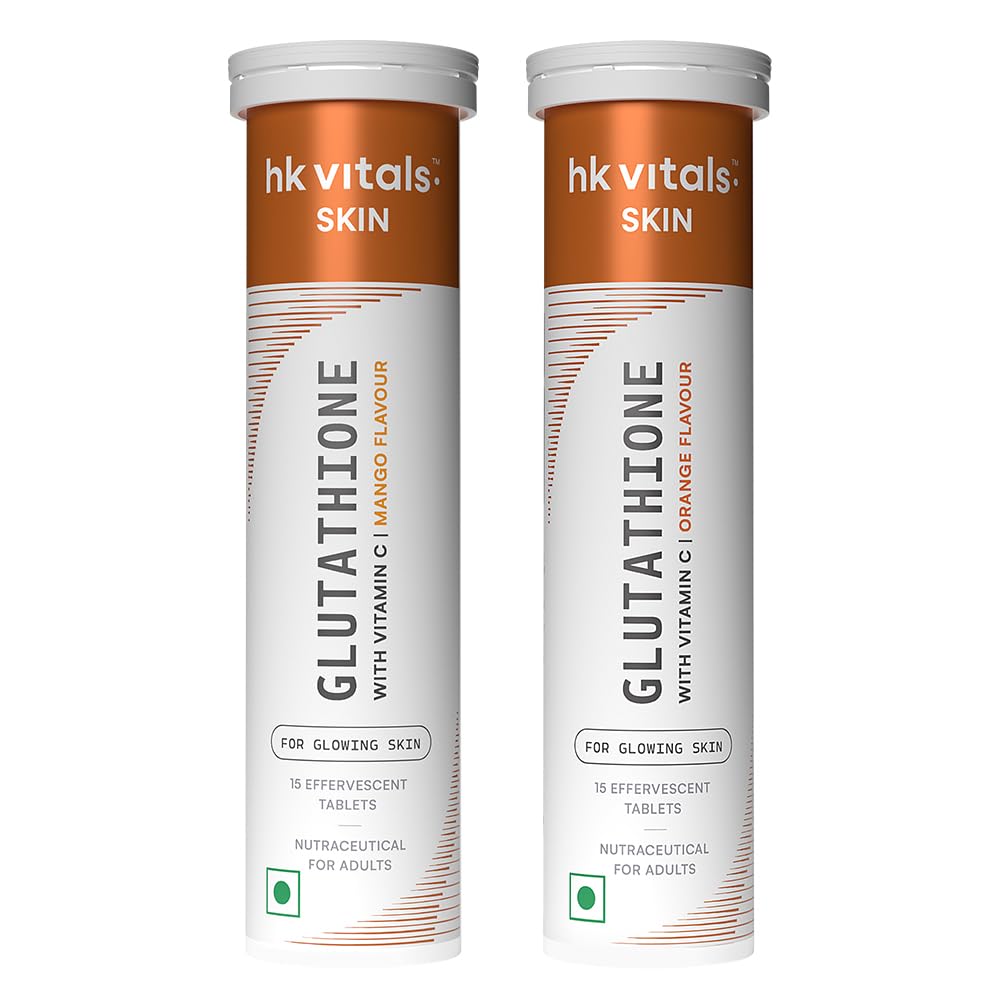 hk vitals Glutathione (Mango Orange 15 Effervescent Tablets) | L-Glutathione Tablets with Vitamin C & E | For Skin Glow & Hydration (Pack of 2)