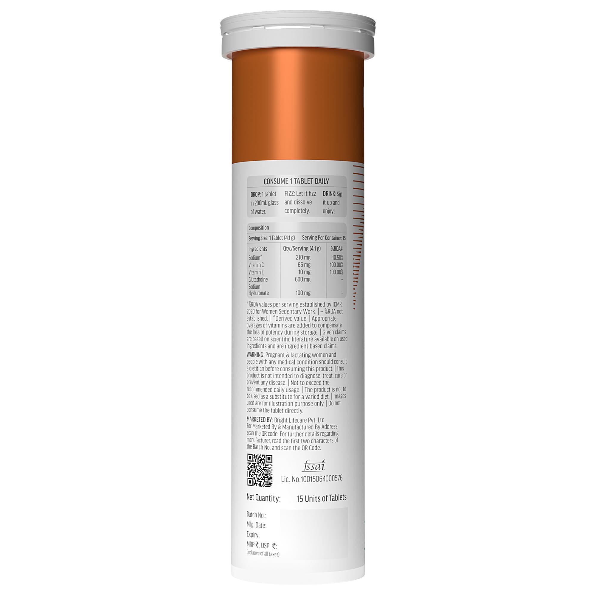 hk vitals Glutathione (Orange 15 Effervescent Tablets) | L-Glutathione Tablets with Vitamin C & E | For Skin Glow & Hydration with Sipper (Pack of 3)