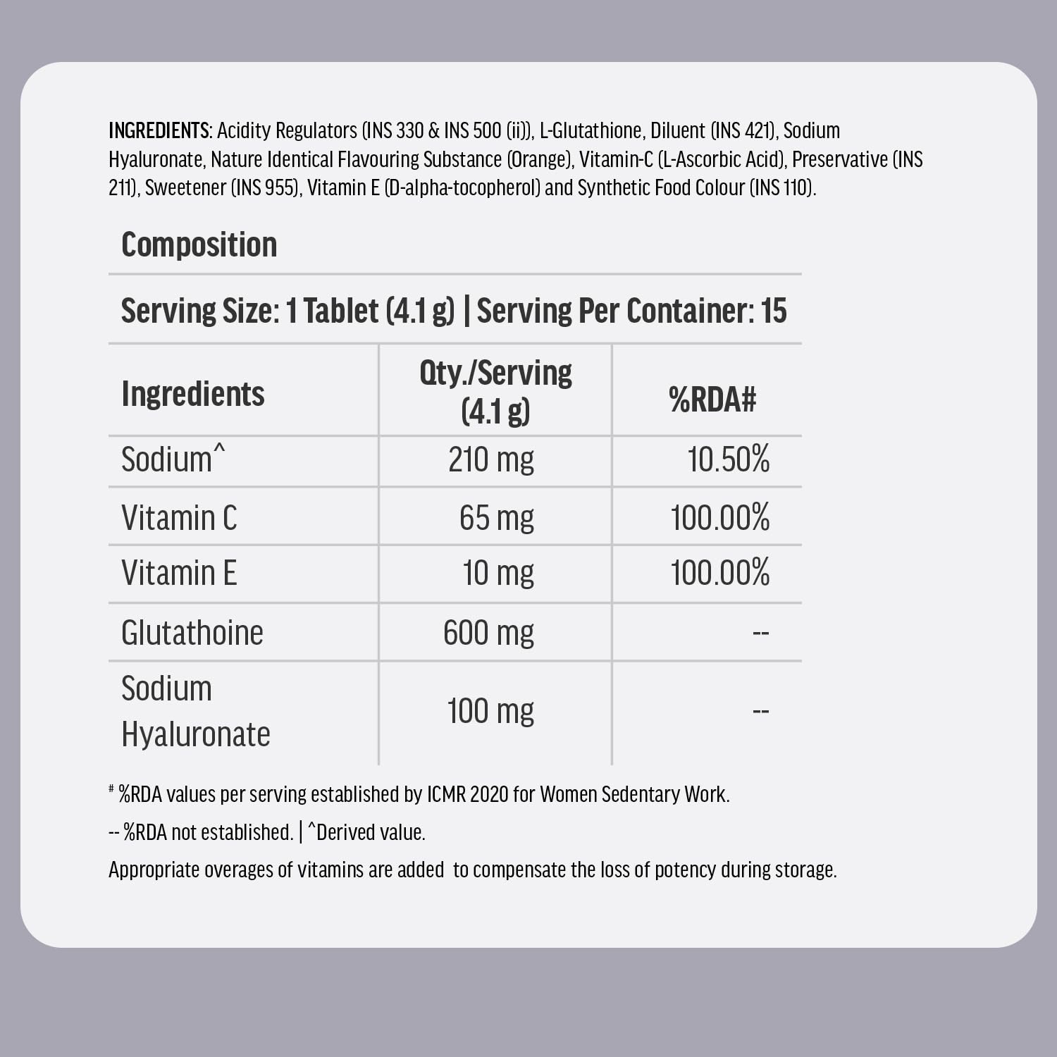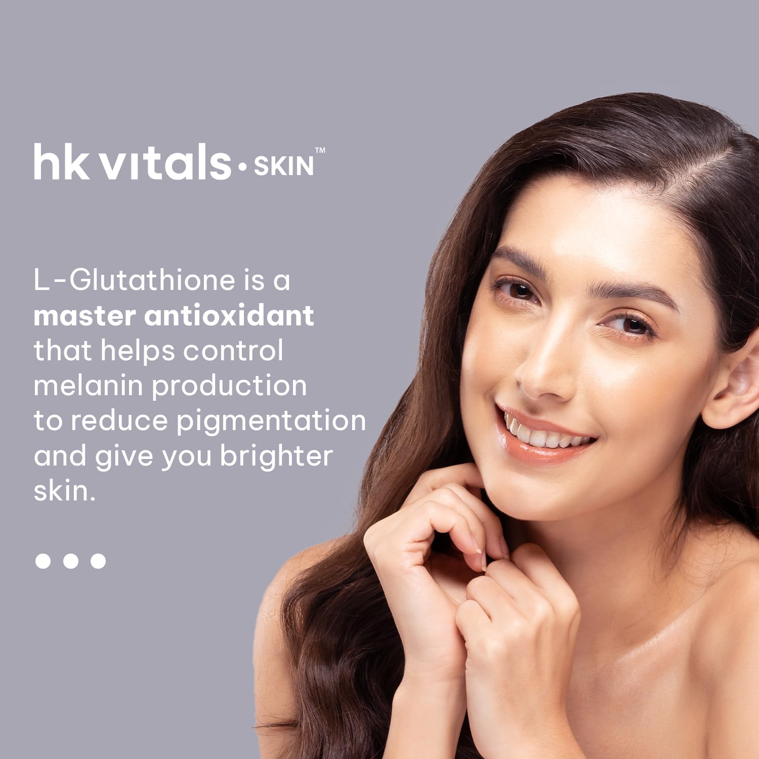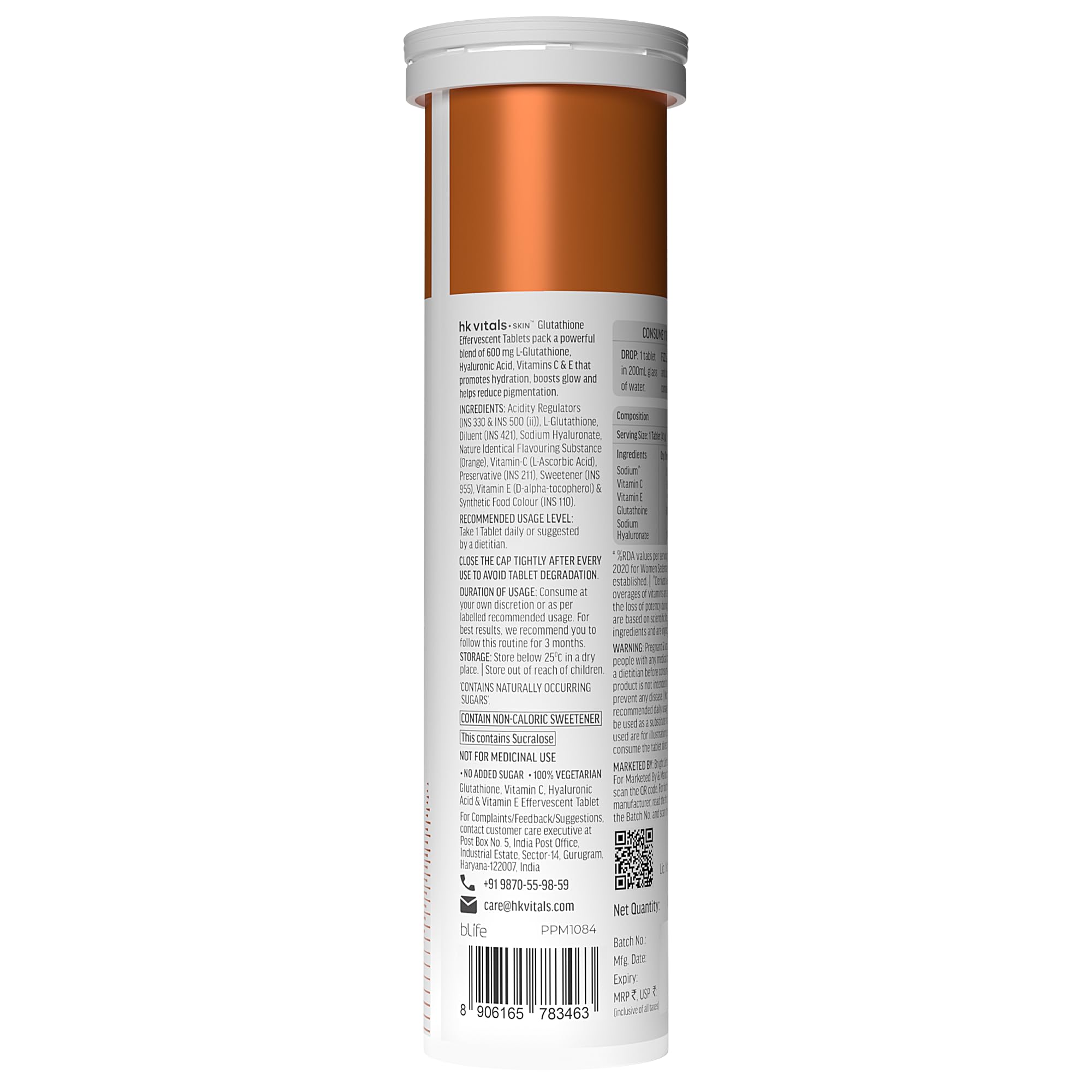 Introducing hk vitals Glutathione Effervescent fizzy tablets that deliver a powerful blend of 600mg L-Glutathione Vitamin C & E. L-Glutathione is a powerful antioxidant which along with Vitamin C & E helps reduce skin dullness and promotes skin glow. Glutathione also helps reduce pigmentation and dark spots by regulating melanin production. One glutathione tablet daily will help improve your skin glow & reduce pigmentation.