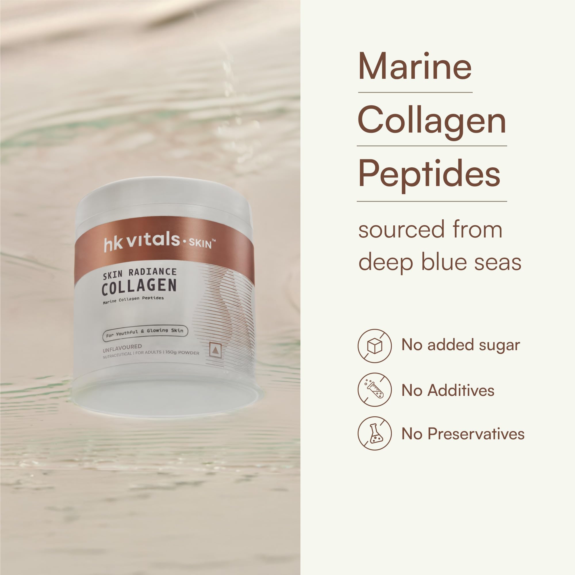 hk vitals Skin Radiance Marine Collagen Supplement Powder (Unflavoured 150g) | Collagen Peptides with Vitamin C E