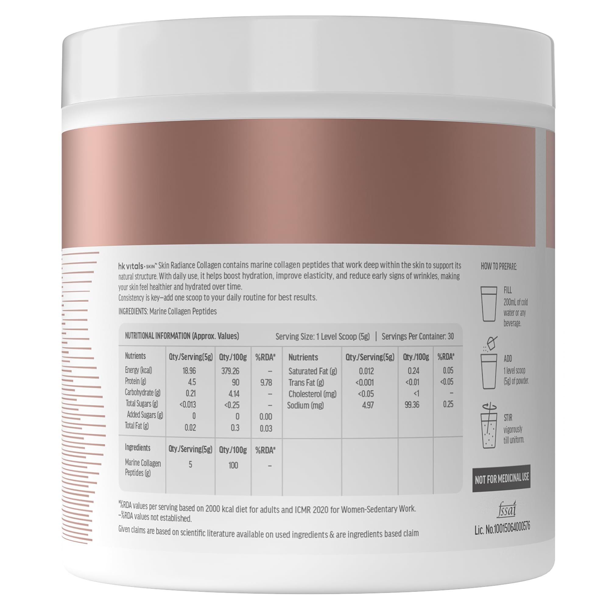 COLLAGEN SUPPLEMENTS FOR WOMEN & MEN: HealthKart hk vitals Skin Radiance Marine Collagen Supplement Powder is a comprehensive formula with marine collagen peptides (TITAGEN â fish collagen) Vitamin C Vitamin E & Biotin - designed to support healthy-look
