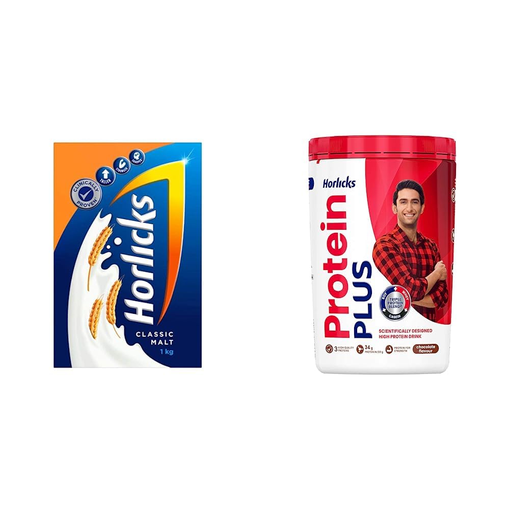 Horlicks (Classic Malt) 1kg Refill and Horlicks Protein + (Chocolate) 400 gm Jar