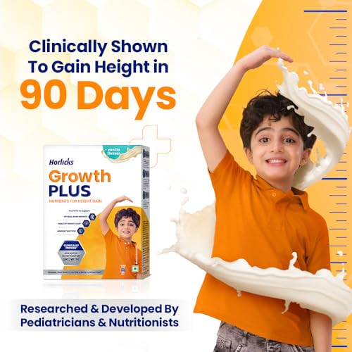 Did you know? âThe right nutrition can add up to 8 inches to your childâs height?â* Clinically proven** to help your child grow taller Horlicks Growth Plus contains 100% of childrenâs daily nutritional requirements of Protein Arginine and several growth-promoting nutrients such as Calcium and Vitamin D which also ensure optimal bone health. It contains > 60% higher# Protein than other brands of toddler nutrition with its high-quality Whey Protein resulting in your child's growth. With Arginine it supports height gain by enhancing growth plate activation in childrenâs bones. Horlicks Growth Plus also contains immuno-nutrients such as Vitamin A C D Iron and Zinc to strengthen your childâs immune system and promote healthy weight gain without causing obesity. Available in a delicious Vanilla flavour 2 spoonfuls^ of Horlicks Growth Plus mixed with lukewarm milk or water twice a day is all it takes to give your child the height boost that they need! * NCD Risk Factor Collaboration (NCD-Risc). Lancet. 2020 Nov 7;396(10261):1511-1524 **Based on study published in J Pediatr 2014; 165:1190-3 & J Pediatr 2016; 179:154-9 #Versus key products in similar category ^ Recommended daily serve 48g/day. Based on study published in J Pediatr 2014; 165:1190-3 & J Pediatr 2016; 179:154-9