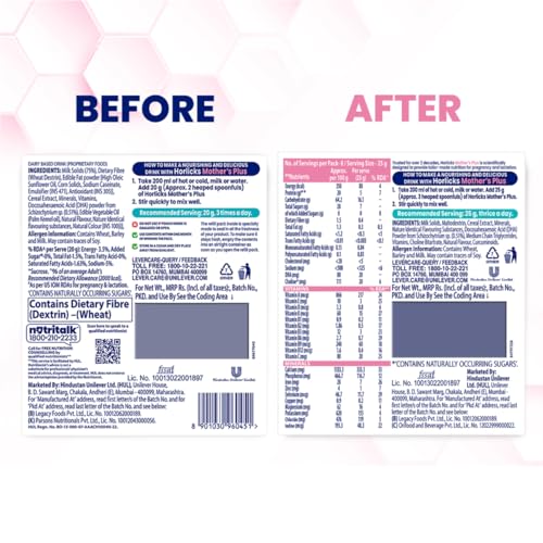 The right nutrition during pregnancy is important for the motherâs health and babyâs growth and the motherâs daily diet alone may sometimes not be sufficient. Trusted for over 2 decades|| Horlicks Motherâs Plus is scientifically designed to provide tailor-made nutrition for pregnancy and lactation. It contains 25 vital nutrients that are important to provide the nutrition for the motherâs health and babyâs growth. It contains 100% RDAs^ of Vitamin B2|| Vitamin B12 and Vitamin C during pregnancy and 100% RDAs^ of Folic acid and Iron during lactation. During the first 6 months|| a new born baby1 is dependent on the motherâs milk to derive nutrition. Therefore|| it is important that the new mother gets enough amount of nutrients to meet the babyâs needs in addition to her own requirements . Horlicks Mother's Plus contains micronutrients (Iron|| Iodine|| Folic Acid|| Zinc|| Magnesium|| Vitamin A|| B6|| B12|| Vitamin D and protein) that are known to support healthy birth weight. It also contains DHA and Choline known to support Brain Development and micronutrients like Vitamins B1|| B2|| B6|| B12|| A|| D; Iodine and Selenium which are known to help improve the quality of breast milk .Horlicks Mother's Plus contains 50% RDAs^ of Immunity supporting nutrients like Vitamin A|| E|| B6 and Selenium. Horlicks Mother's Plus is a nutritional beverage to be consumed as a part of daily diet 1exclusively breastfed. ^In 3 serves (75 g). #Added sugar refers to Sucrose.'CONTAINS NATURALLY OCCURRING SUGARS'*OLD