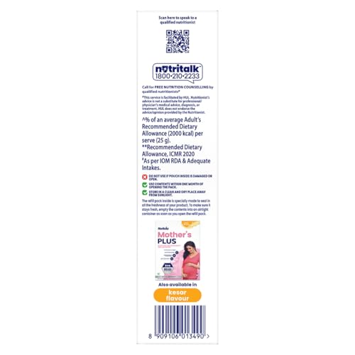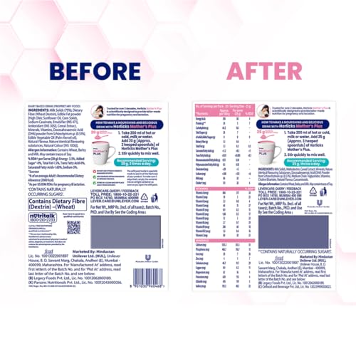 The right nutrition during pregnancy is important for the motherâs health and babyâs growth and the motherâs daily diet alone may sometimes not be sufficient. Trusted for over 2 decades|| Horlicks Motherâs Plus is scientifically designed to provide tailor-made nutrition for pregnancy and lactation. It contains 25 vital nutrients that are important to provide the nutrition for the motherâs health and babyâs growth. It contains 100% RDAs^ of Vitamin B2|| Vitamin B12 and Vitamin C during pregnancy and 100% RDAs^ of Folic acid and Iron during lactation. During the first 6 months|| a new born baby1 is dependent on the motherâs milk to derive nutrition. Therefore|| it is important that the new mother gets enough amount of nutrients to meet the babyâs needs in addition to her own requirements . Horlicks Mother's Plus contains micronutrients (Iron|| Iodine|| Folic Acid|| Zinc|| Magnesium|| Vitamin A|| B6|| B12|| Vitamin D and protein) that are known to support healthy birth weight. It also contains DHA and Choline known to support Brain Development and micronutrients like Vitamins B1|| B2|| B6|| B12|| A|| D; Iodine and Selenium which are known to help improve the quality of breast milk .Horlicks Mother's Plus contains 50% RDAs^ of Immunity supporting nutrients like Vitamin A|| E|| B6 and Selenium. Horlicks Mother's Plus is a nutritional beverage to be consumed as a part of daily diet 1exclusively breastfed. ^In 3 serves (75 g). #Added sugar refers to Sucrose.'CONTAINS NATURALLY OCCURRING SUGARS'*OLD