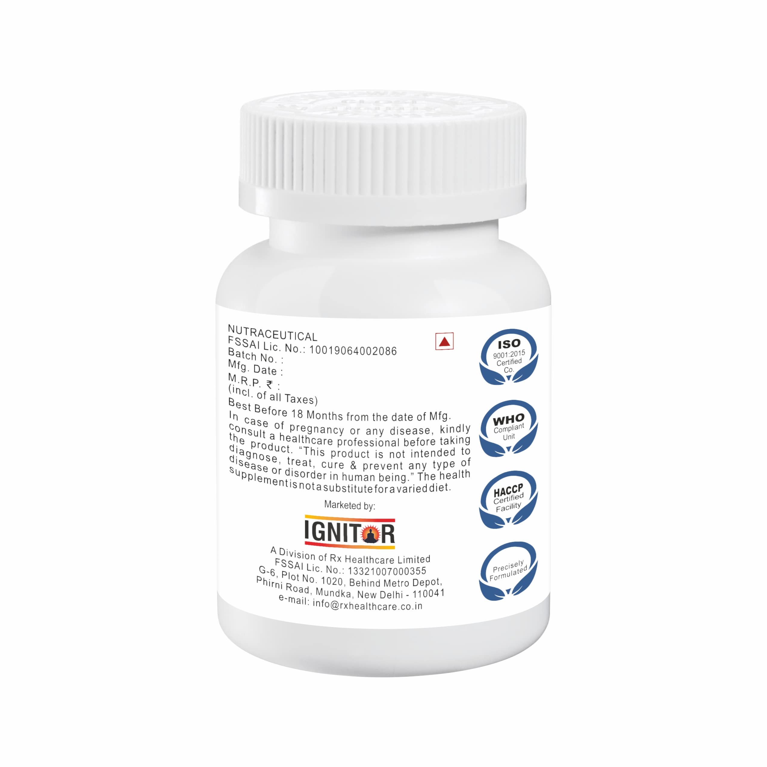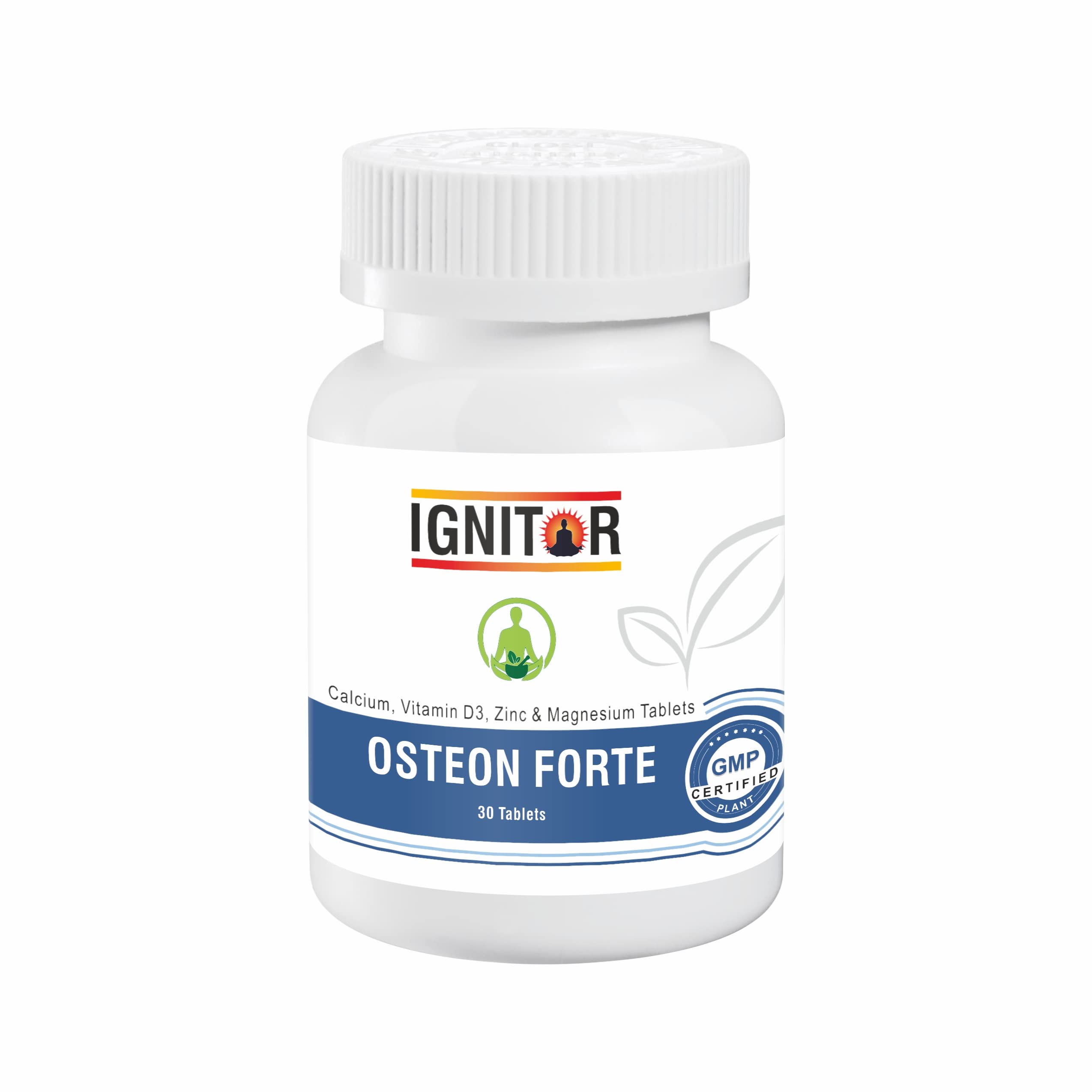 Ignitor OstForte Tabs.. is a combination of Calcium Vitamin D3 Zinc & Magnesium. These Caps.. Gives you Nutrions like Protein Fat Energy Carbhydrate and . Dosage : As directed by the Healthcare Professional