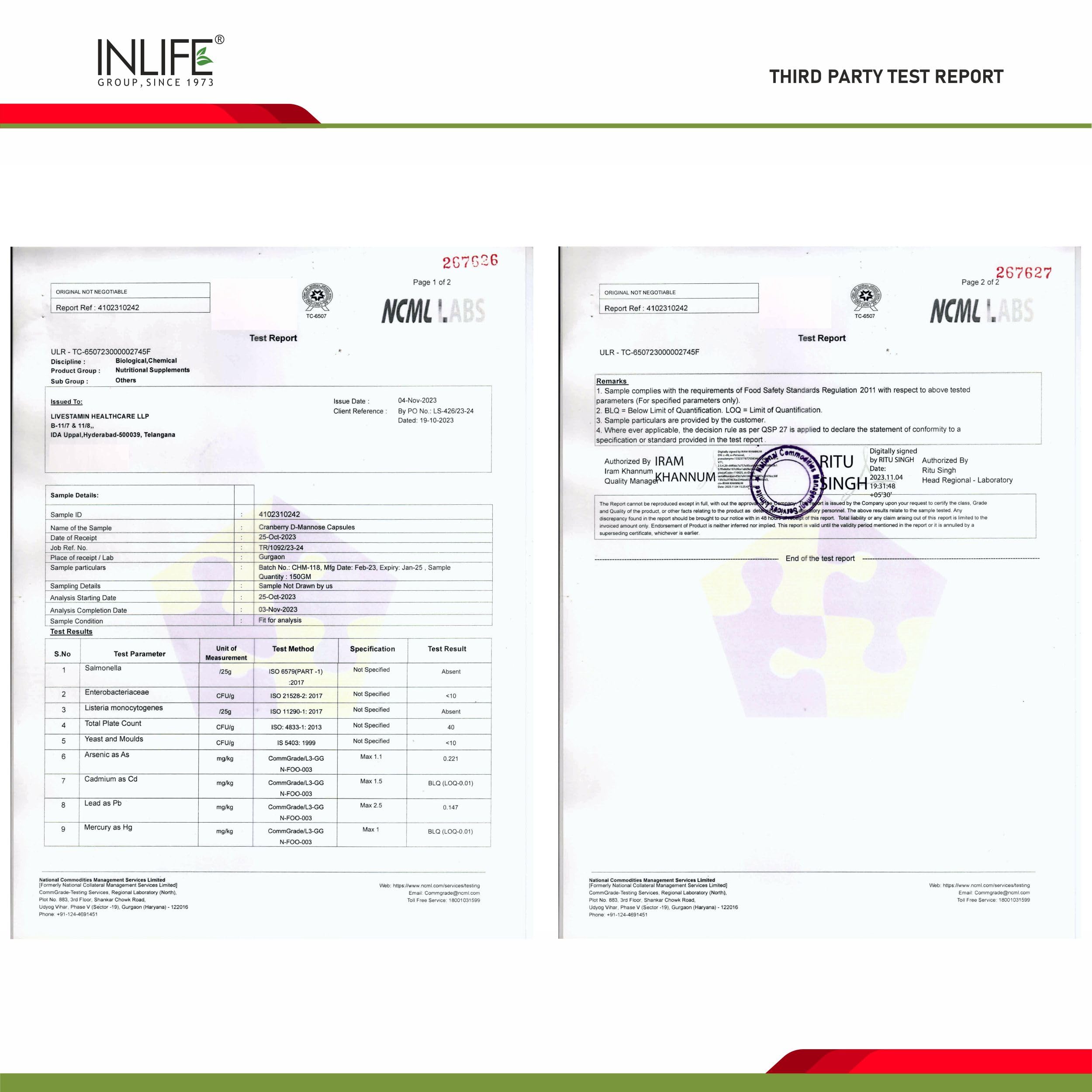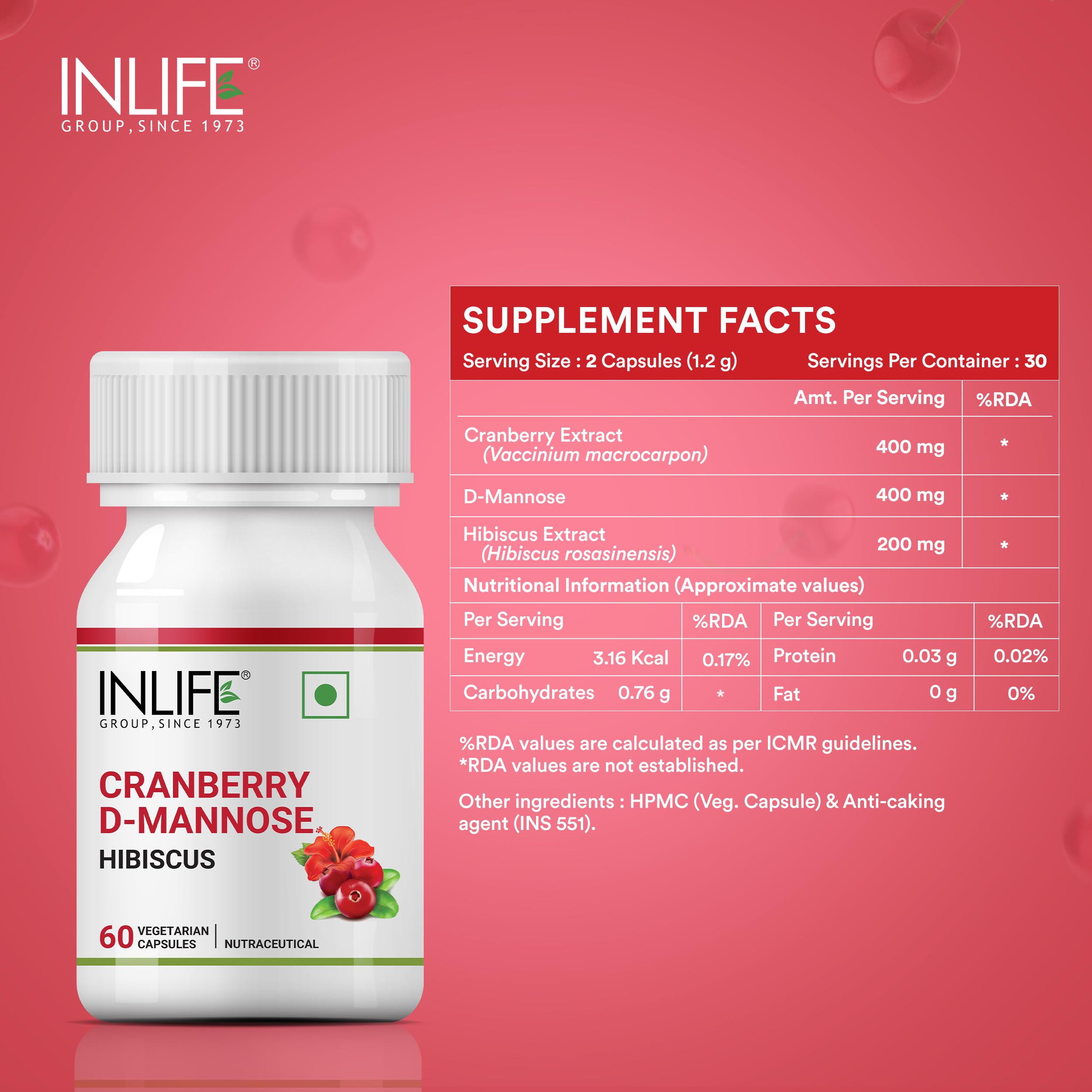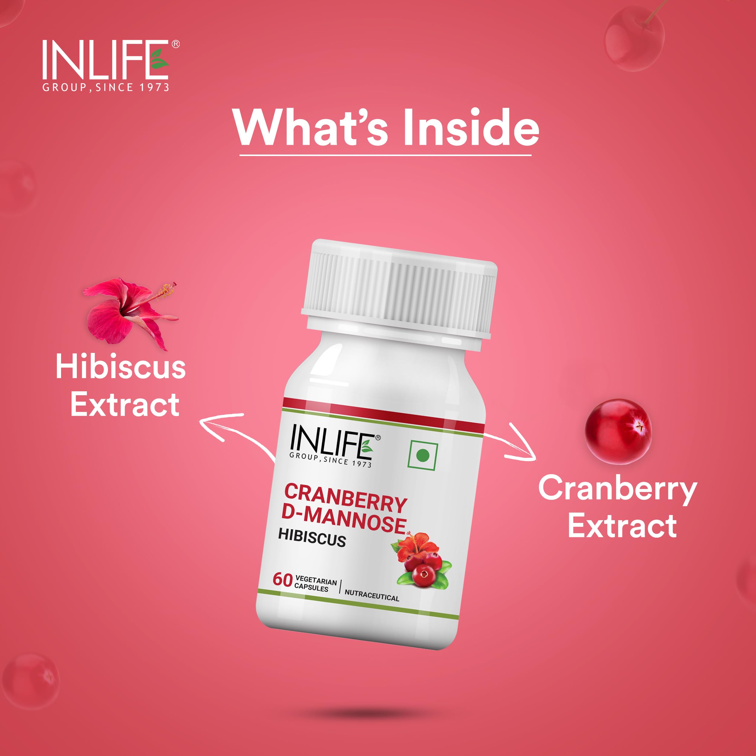 INLIFE Cranberry Capsules for Urinary Tract | D-Mannose Hibiscus Extract | Health Supplement for UTI | Men Women - 60 Vegetarian Capsules (Pack of 1 60)