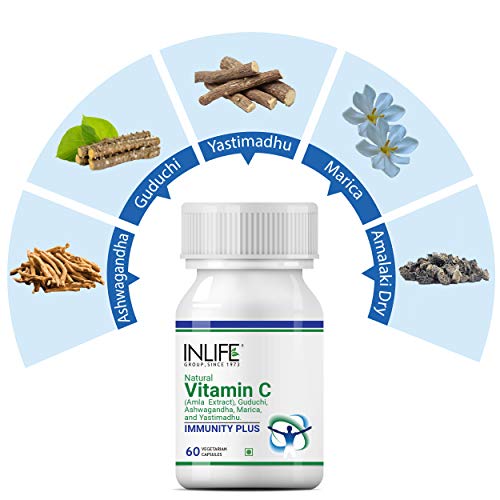 INLIFE Immunity Plus capsules for adults are manufactured to highest quality standards. It is made with only the best premium and natural ingredients. For optimal results take 1-2 capsules daily after meals or as directed by healthcare professional. It is a unique combination of Amla (Natural Vitamin C) Ashwagandha Guduchi (Giloy) Yastimadhu (Licorice) Marica. Ashwagandha is a stress buster. Guduchi works as detoxifier. Amalaki is useful in promoting general health & longevity and is beneficial for digestive system. Yastimadhu promotes oral health and increase immunity. Marica helps to reconcile the digestive and respiratory system. Our product contains the most natural and effective formulation of trusted natural ingredients that are carefully processed and manufactured in a GMP certified manufacturing facility so you can be sure that you are safe. Vegan and vegetarian friendly Inlife Immunity Plus Capsules is produced in gluten-free capsules and contains no artificial ingredients. An Ayush approved product. Keep using for a long period to stay strong and stay safe against infections and boost your immunity naturally.