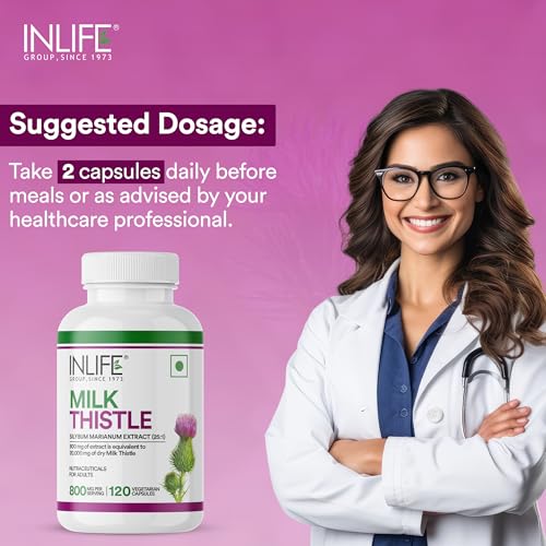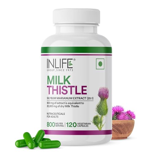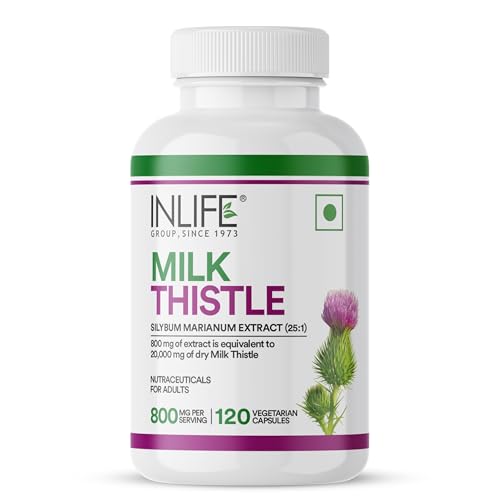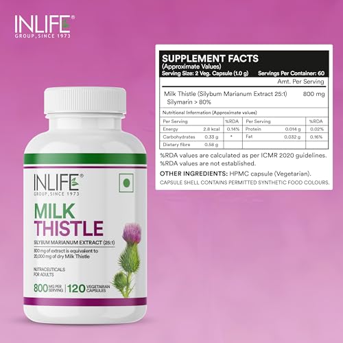 INLIFE Milk Thistle Extract 800mg | 80% Silymarin Liver Support Supplement - 120 Vegetarian Capsules