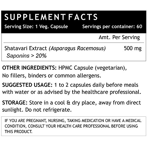 SHATAVARI CAPSULES: INLIFE Shatavari Extract Capsules contain safe natural ingredients and is manufactured to Quality standards. This Ayurvedic tonic helps support milk supply and aids in balancing the system. Each capsule contains 500 mg of pure Shatavari extract standardized to 20% Saponins. For optima results take 1 or 2 capsules daily before meals or as advised by your healthcare professional. NUTRITIVE TONIC: As a nutritive tonic Shatavari encourages healthy production of milk in lactating mothers. According to Ayurveda it is also useful for supporting the menopausal transition. Shatavari supports a healthy immune system and assists in both physical and mental digestion. BALANCE HORMONE LEVELS: Shatavari supplements aids in balancing female hormonal system. Helps to relieve from uncomfortable menopausal symptoms like hot flashes and night sweats. Supports the nervous system and eases your transition. It also helps to relieve from irritability mood swings vaginal dryness and occasional sleeplessness. PURITY: Our product contains the most natural and effective formulation of trusted natural ingredients that are carefully processed and manufactured in a GMP certified manufacturing facility so you can be sure that you're safe. Vegan and vegetarian friendly-INLIFE Shatavari extract vegetarian capsules is produced in gluten-free capsules and contains no artificial ingredients. Consider ordering one bottle for yourself and another for a friend or loved one. Keep each other motivated and reach your goals together and more quickly. INLIFE Healthcare stands by every quality product they make. We manufacture only premium and extra pure but high potency vitamins capsules pills tablets powders multivitamins supplements and natural herbal skin & personal care products for men women and children. Check INLIFE Healthcare out today!