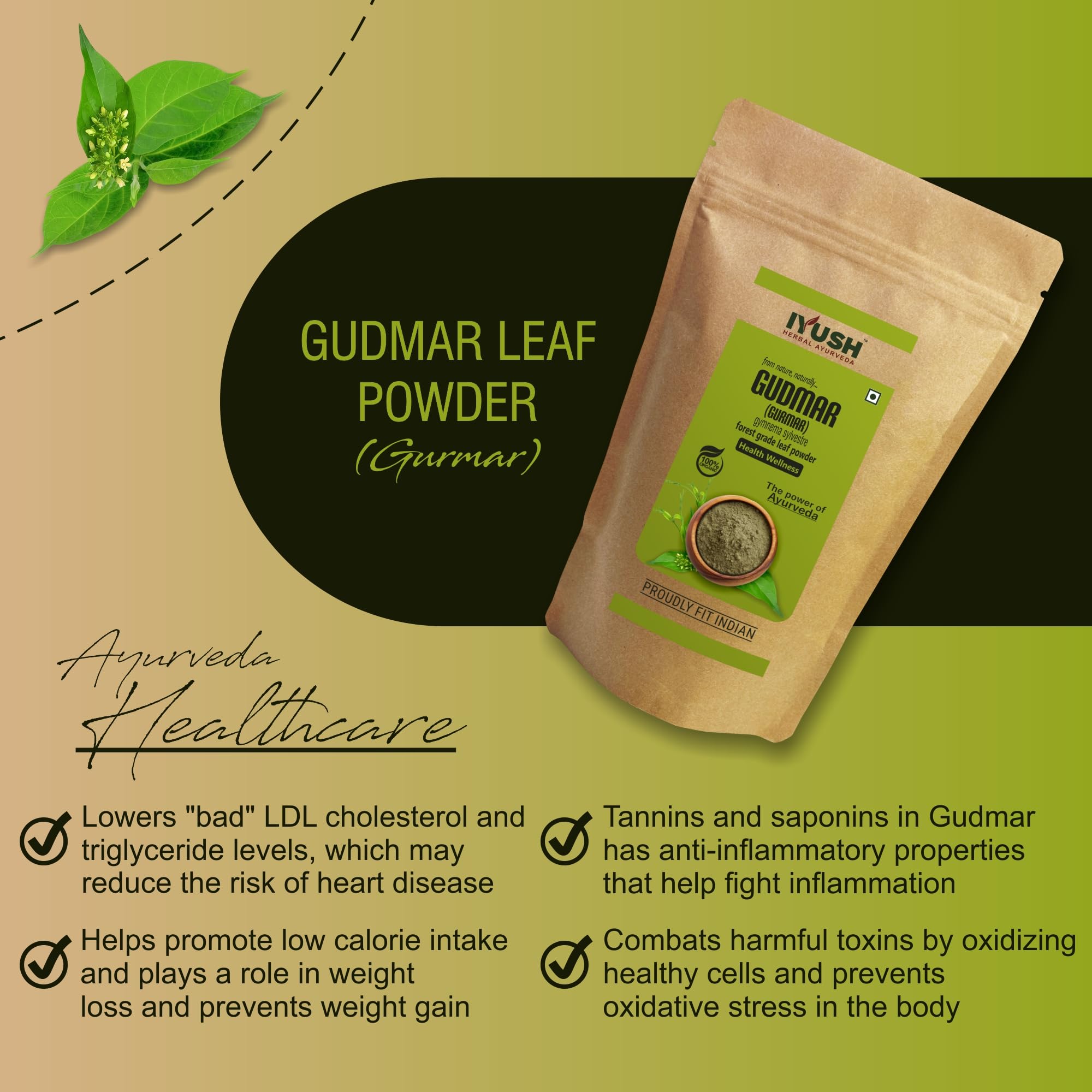 Gudmar also known as Gymnema sylvestre is a natural herb that has been used in Ayurveda for centuries for numerous health benefits. It is an organic healthcare powder made from shade-dried wild forest grade Gudmar leaves that contain the highest active nutrients grown naturally without any harmful chemicals or pesticides or fertilizers.