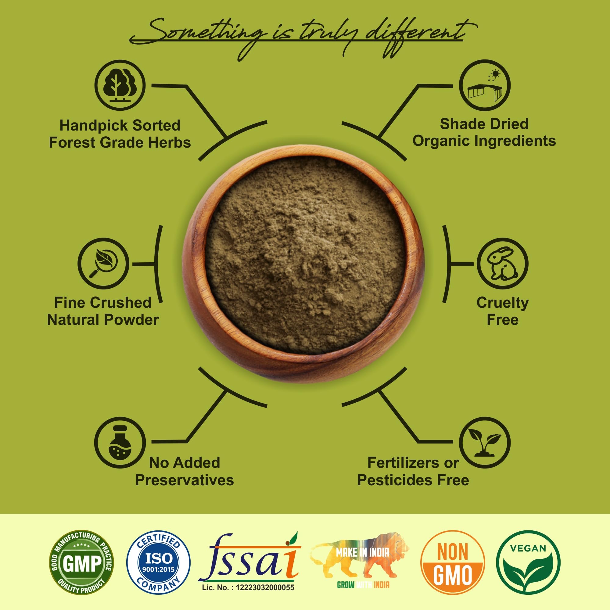 Made From Shade-Dried Wild Ingredients: Herbs are usually dried in brisk sunlight for quick drying due to which not only the color of the herb becomes darker but also its quality is reduced by the harmful rays of the sun. It is an organic natural powder m