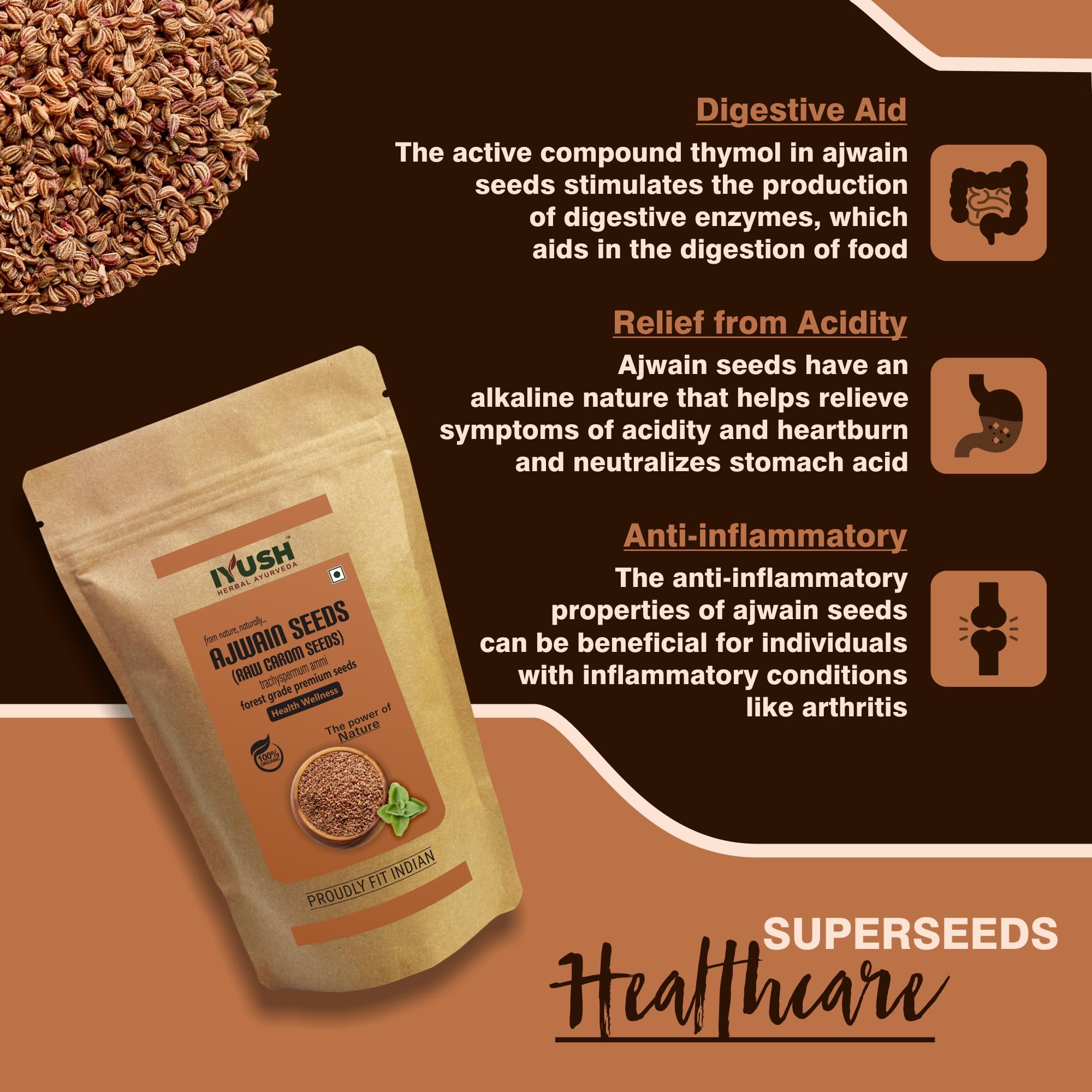 Discover the aromatic and flavorful world of our Ajwain Seeds sourced for their premium quality. These tiny seeds also known as carom seeds are a staple in culinary delights adding a distinct and savory note to your dishes. Renowned for their digestive properties Ajwain Seeds provide both taste enhancement and potential digestive support. Elevate your culinary experience with the rich and versatile profile of our Ajwain Seeds.