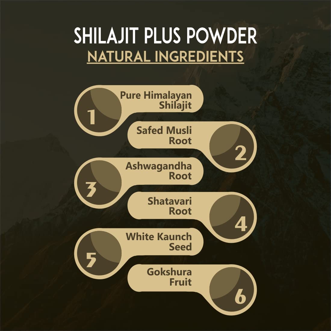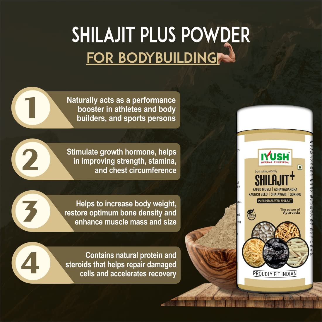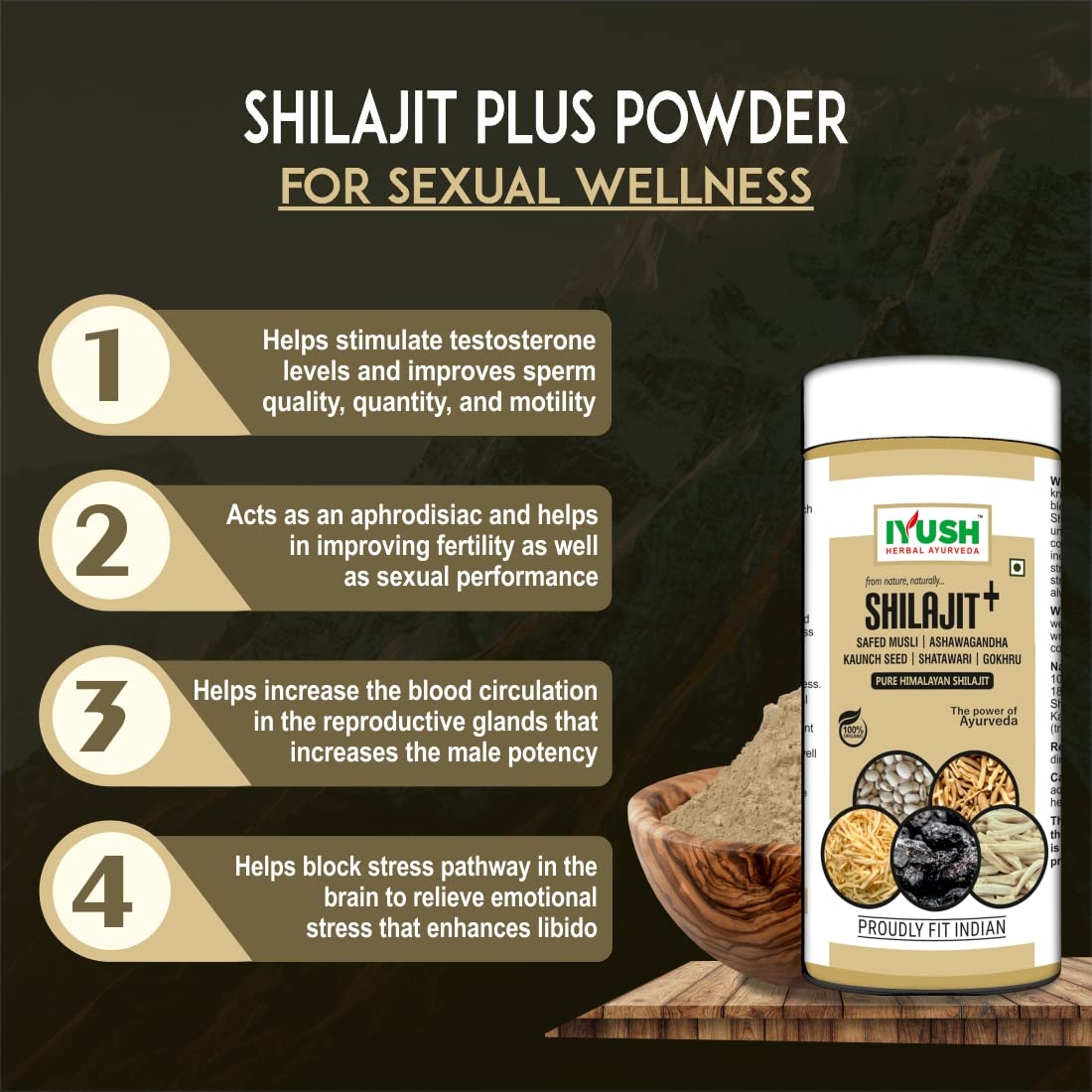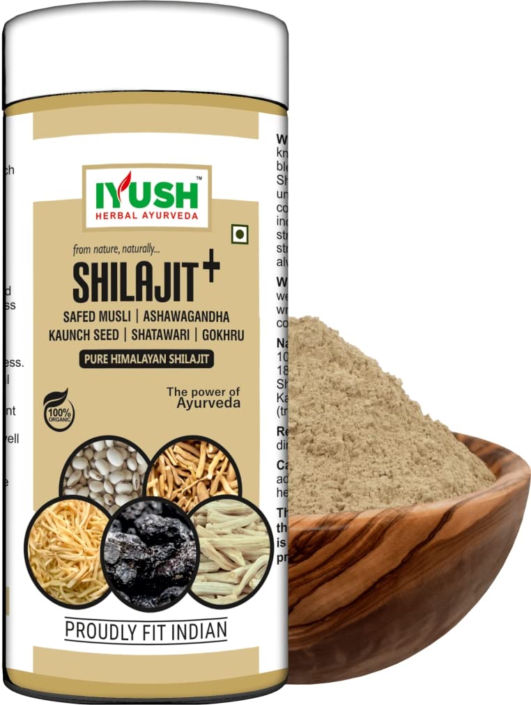 IYUSH Herbal Ayurveda Pure Shilajit Original Powder with Ashwagandha Safed Musli Satavar Gokshura Kaunch Beej | Shilajeet Original | Silajit Original Himalayan | Energy Booster for Men & Women | 100gm