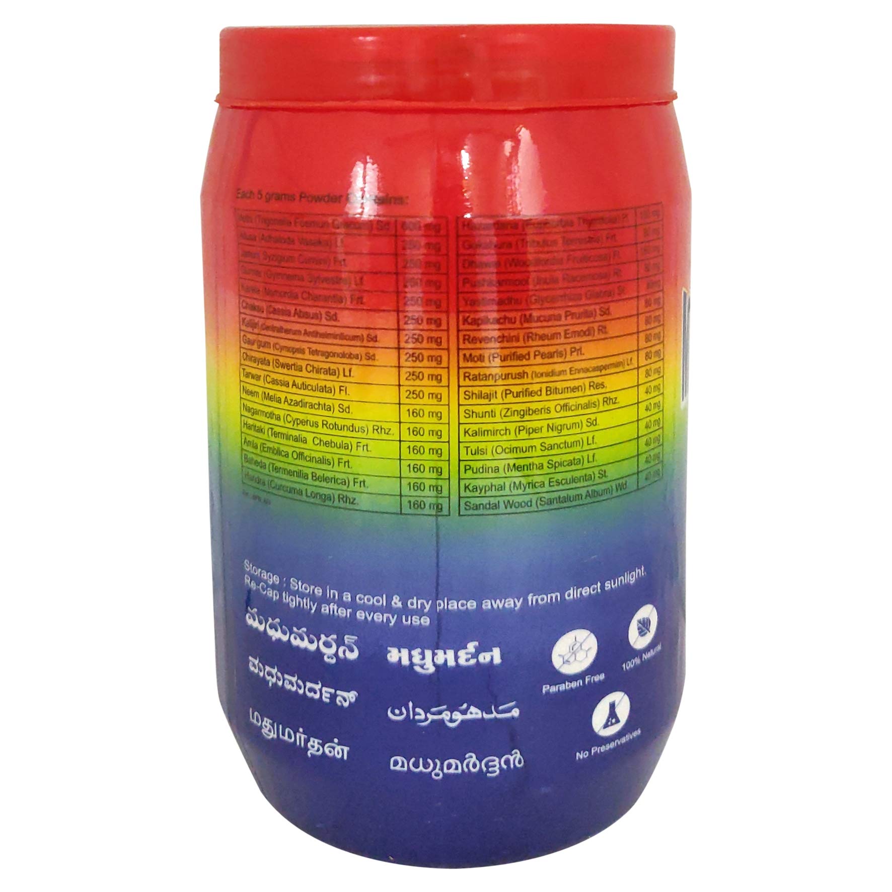 Madhumardan is a time tested holistic comprehensive formulation of 32 natural herbal ingredients (including Mineral Pitch and purified Pearls) with synergistic action on Diabetes and the complications arising out of it. It has been very helpful for the diabetic & non diabetic