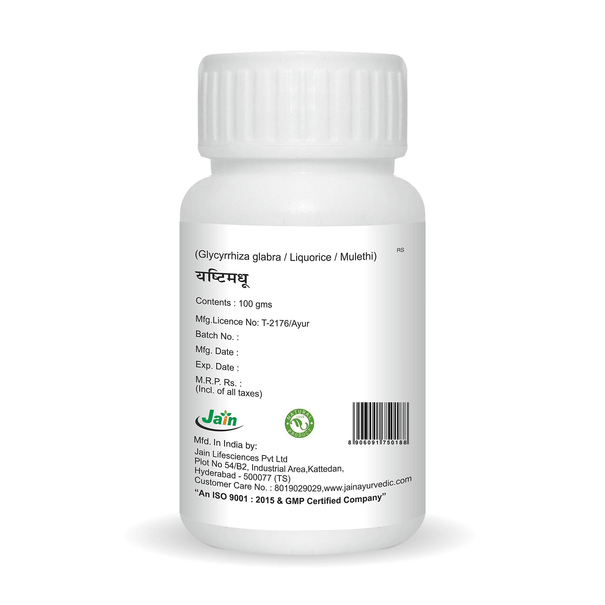 Jain Yastimadhu (Mulethi) Powder 100 g - 2 BottlesYastimadhu known as Mulethi / Licorice Powder is natural of the highest quality and comes with the purity guarantee from the brand. Dried and powdered in a hygiene facility this powder can be used widely in face masks to achieve beautiful radiant skin. The antibacterial and antioxidant properties in it helps to keep the skin free of scars and blemishes.Jain Ashwagandha Powder 100G (Pack Of 2)Ashwagandha (Withania somnifera) is one of the most highly regarded and commonly used adaptogens in the Ayurvedic pharmacopoeia. Maximizing the body's ability to resist stress it enables the body to reserve and sustain vital energy throughout the day while promoting sound restful sleep at night.*This potent herb is used to promote muscle strength and to support comfortable joint movement. It is also used to maintain potency and a healthy libido for it is said to bestow upon its user the vitality and strength of a horse. As a rejuvenative Ashwagandha is particularly useful to seniors and for anyone that would benefit from a nourishing natural source of energy.