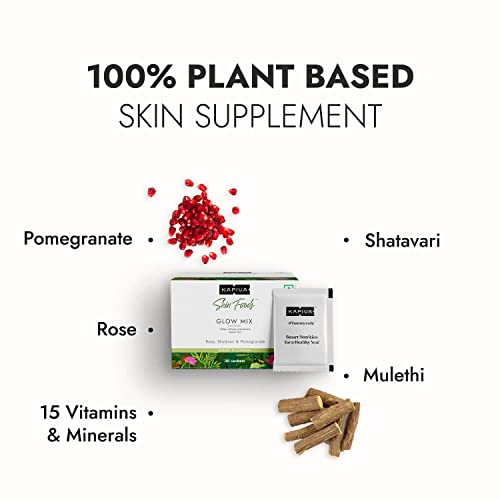 • Product 1: PLANT-BASED INGREDIENTS & 15+ VITAMINS - Glow Mix is fortified with the goodness of ingredients like pomegranate rose mulethi lycopene derived from tomatoes and 15+ multivitamins like VitaminC Vitamin A Vitamin E for skin. It helps in skin brig