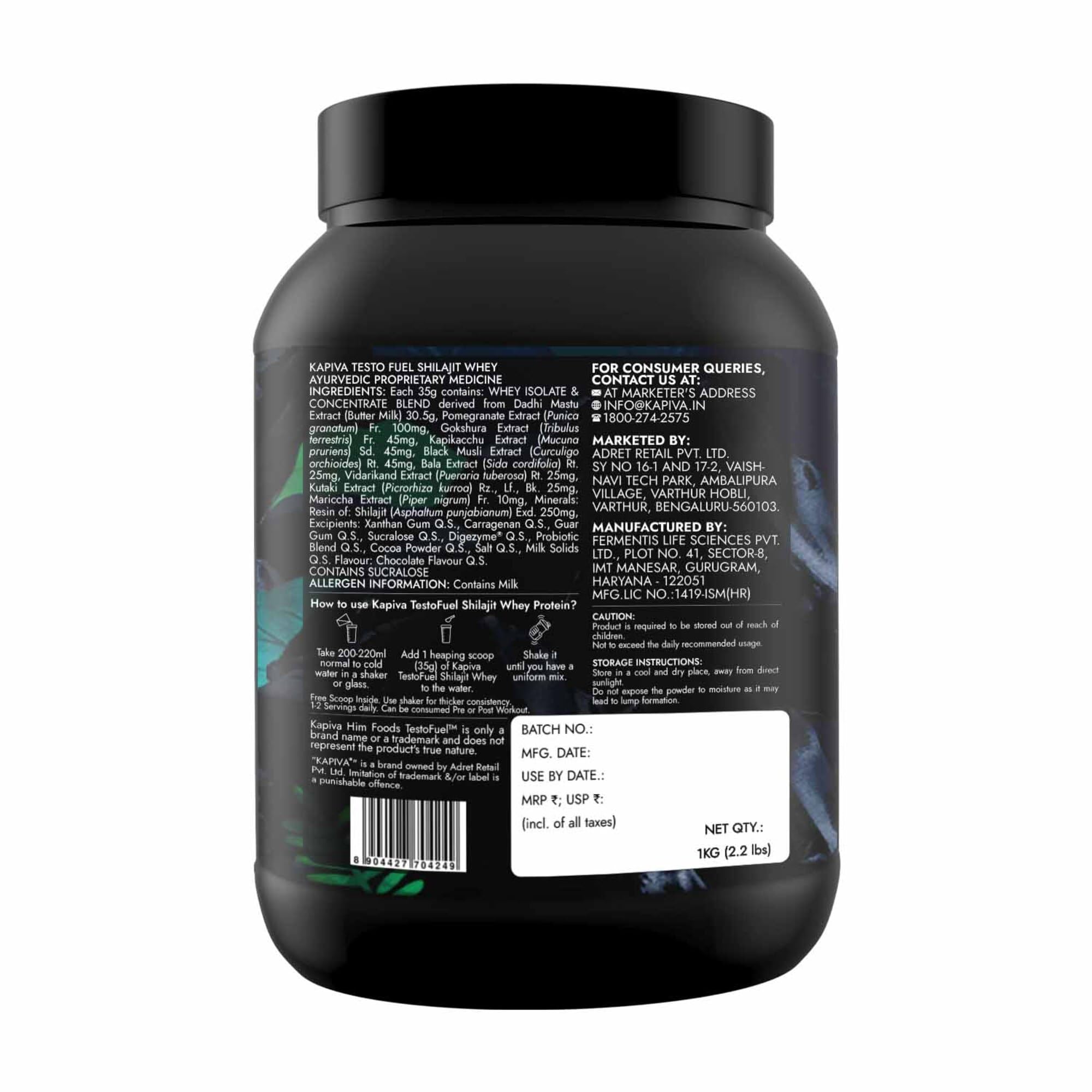 Kapiva Testofuel Shilajit Whey Protein| 25g Protein | 250mg Shilajit | 5.5g BCAA | Belgian Chocolate | Faster Absorption | Digezyme blend | WADA Compliant | 1Kg/ 2.2lb