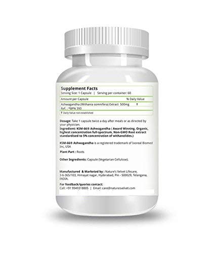 nature's velvet Ksm66 Ashwagandha (500 mg) -60 Veg Capsules