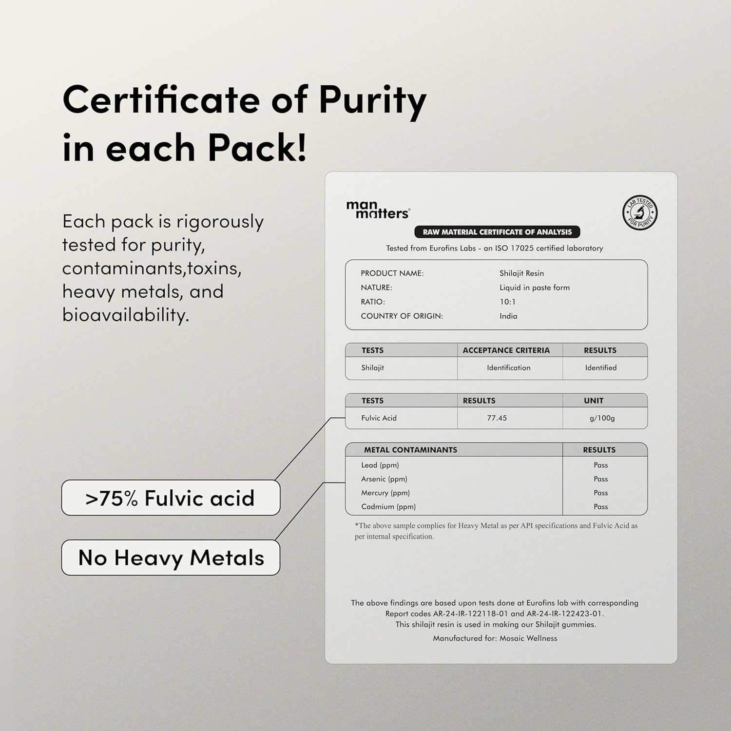 Man Matters Pure Himalayan Shilajit/Shilajeet Gummies Advanced With 75% Fulvic Acid Ksm 66 Ashwagandha & Black Pepper | Boosts Stamina & Improves Energy Levels | No Added Sugar | Pack Of 60