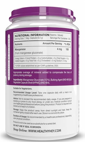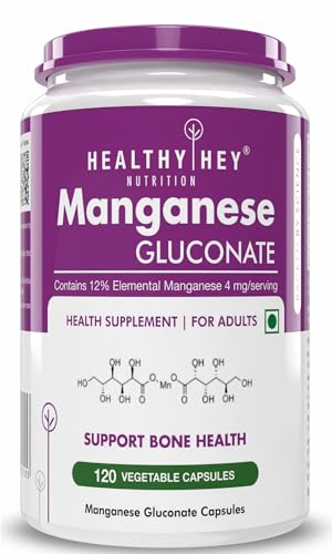 Manganese Gluconate - Hypoallergenic Trace Mineral Supplement for Connective Tissue and Bones - Capsules 120 Count Pack of 1
