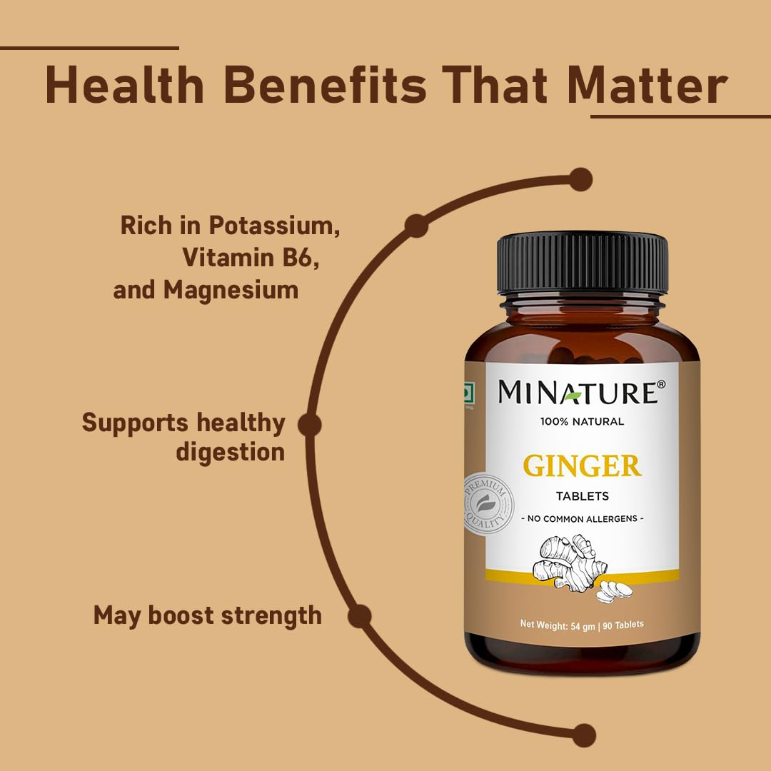 mi nature Ginger Tablets 90 Tablets (Zingiber officinale) | Sonth | 90 Tablets 45 Days Supply