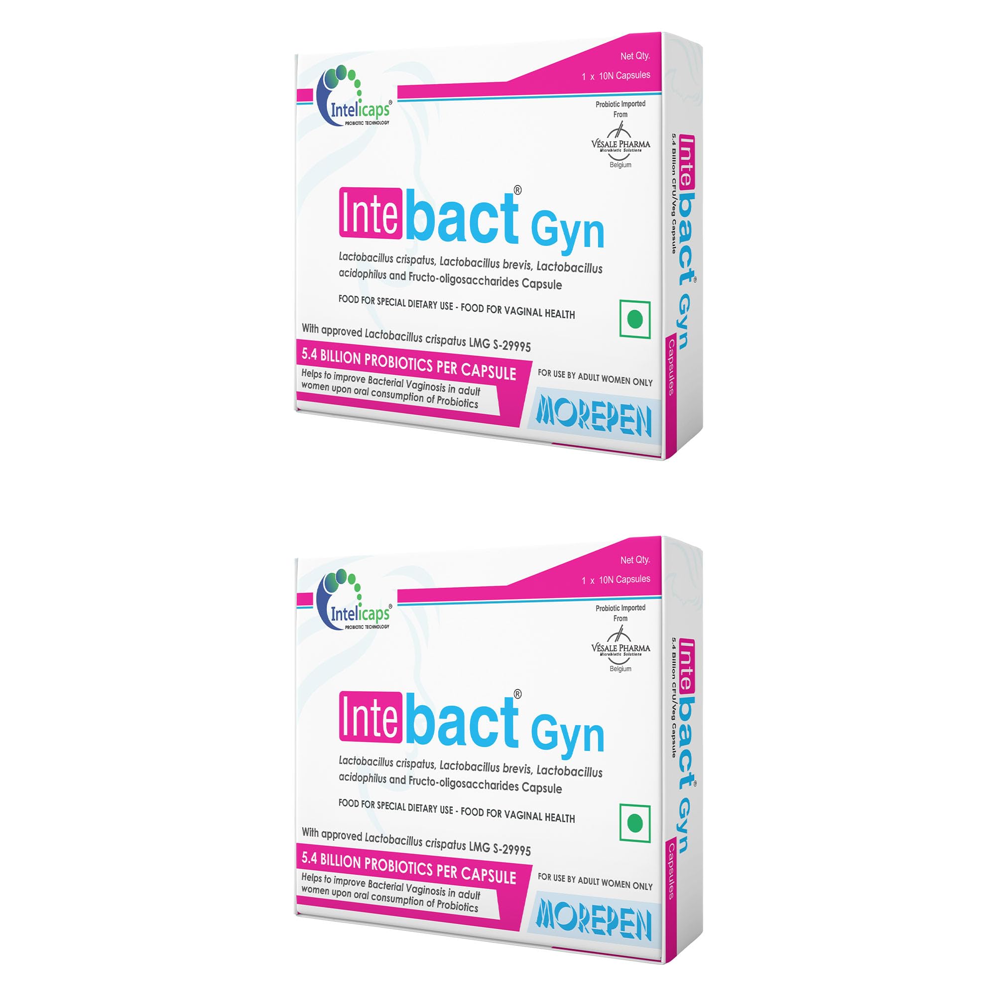 MOREPEN INTEBACT GYN 5.4 BN CFU Capsules | Probiotics Support for Intimate Health & Immunity Booster for Women | 10 Capsules Pack of 2