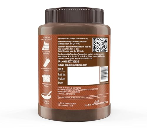 • FIBRE-RICH & TRANS-FAT-FREE SPREAD: This MuscleBlaze Fit Peanut Butter Chocolate flavour contains 10 g dietary fibre per 100 g that supports normal bowel movements and weight management