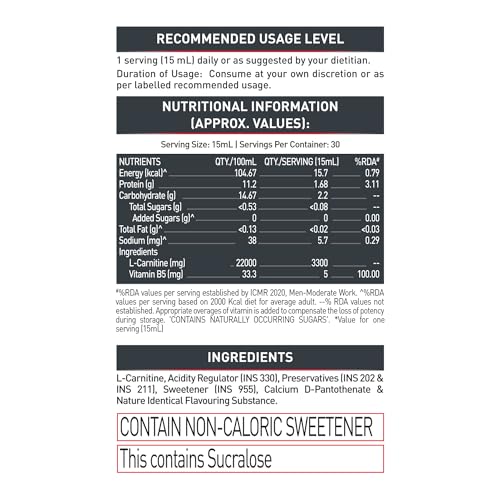 • ENRICHED WITH VITAMIN B5: You get 5 mg Vitamin B5 per serving in this potent L-Carnitine liquid it helps in keeping the digestive tract healthy along with converting the food into energy