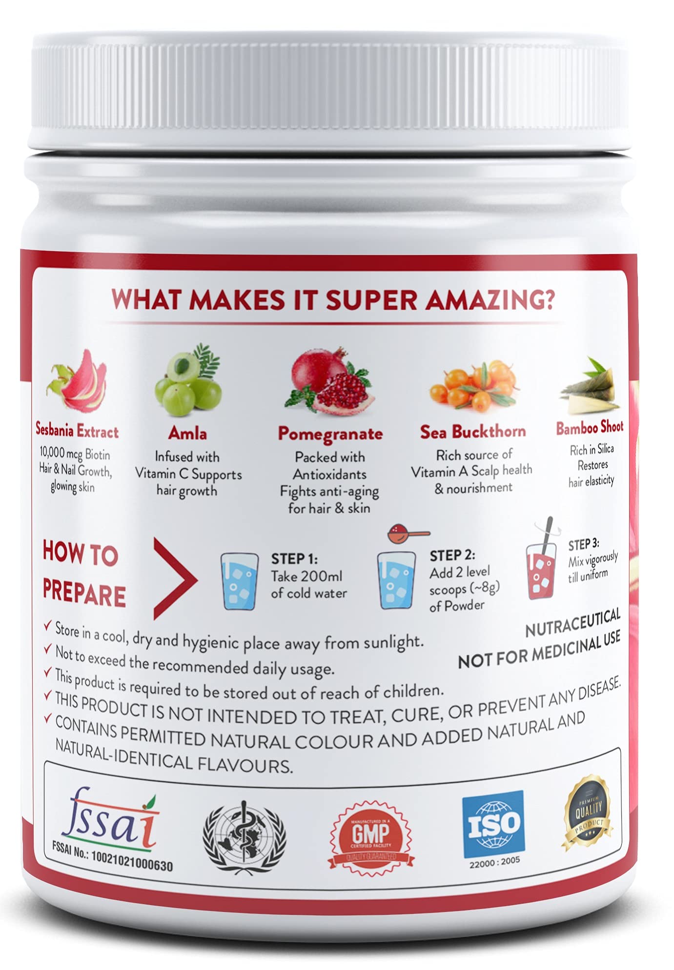 ALL NATURAL: Plant Based Biotin features Wholefood Biotin extracted from 100% Natural Sesbania Agati leaves along with Bamboo Shoot Amla Pomegranate Tamarind Fennel Seed and lot more from nature to give you a wholesome experience