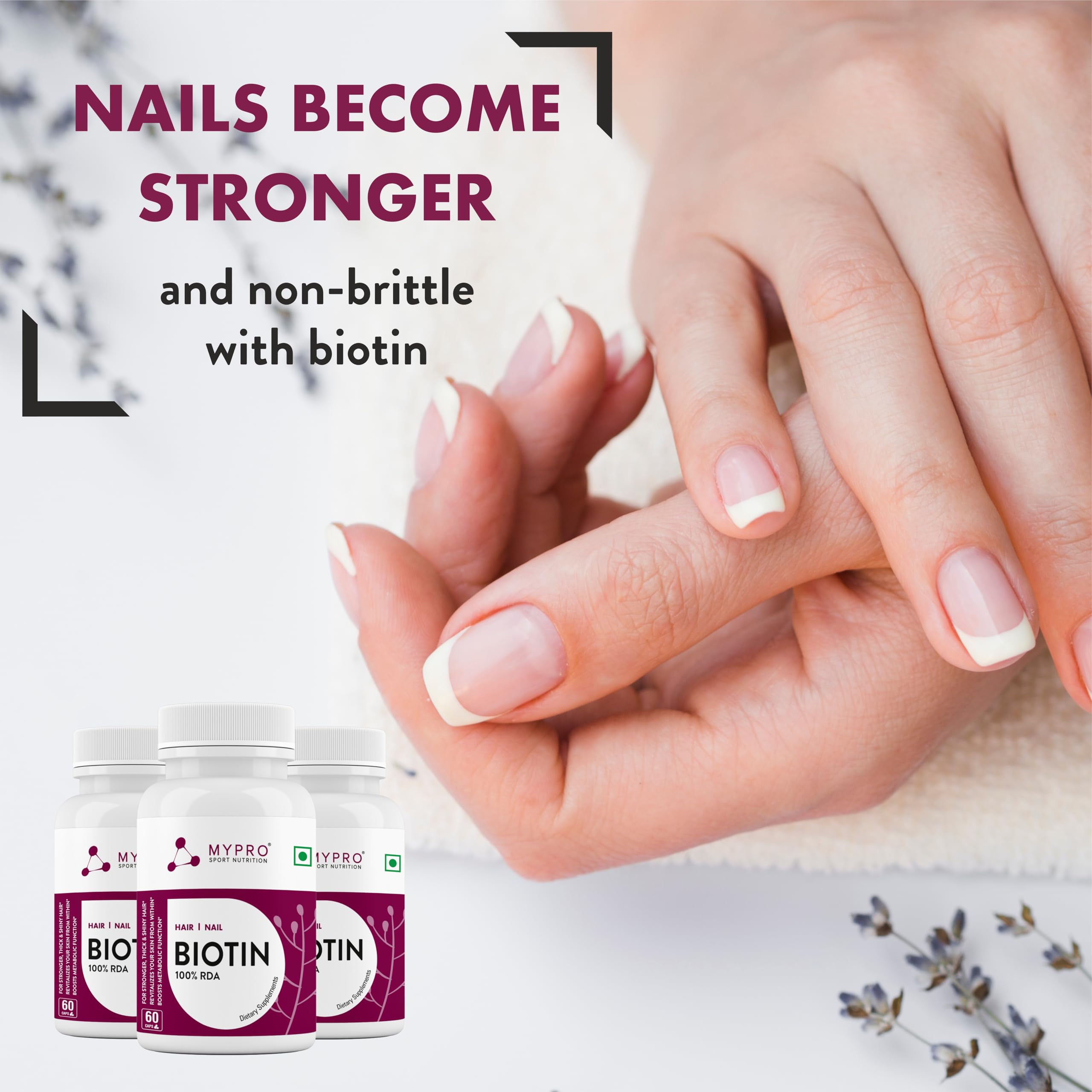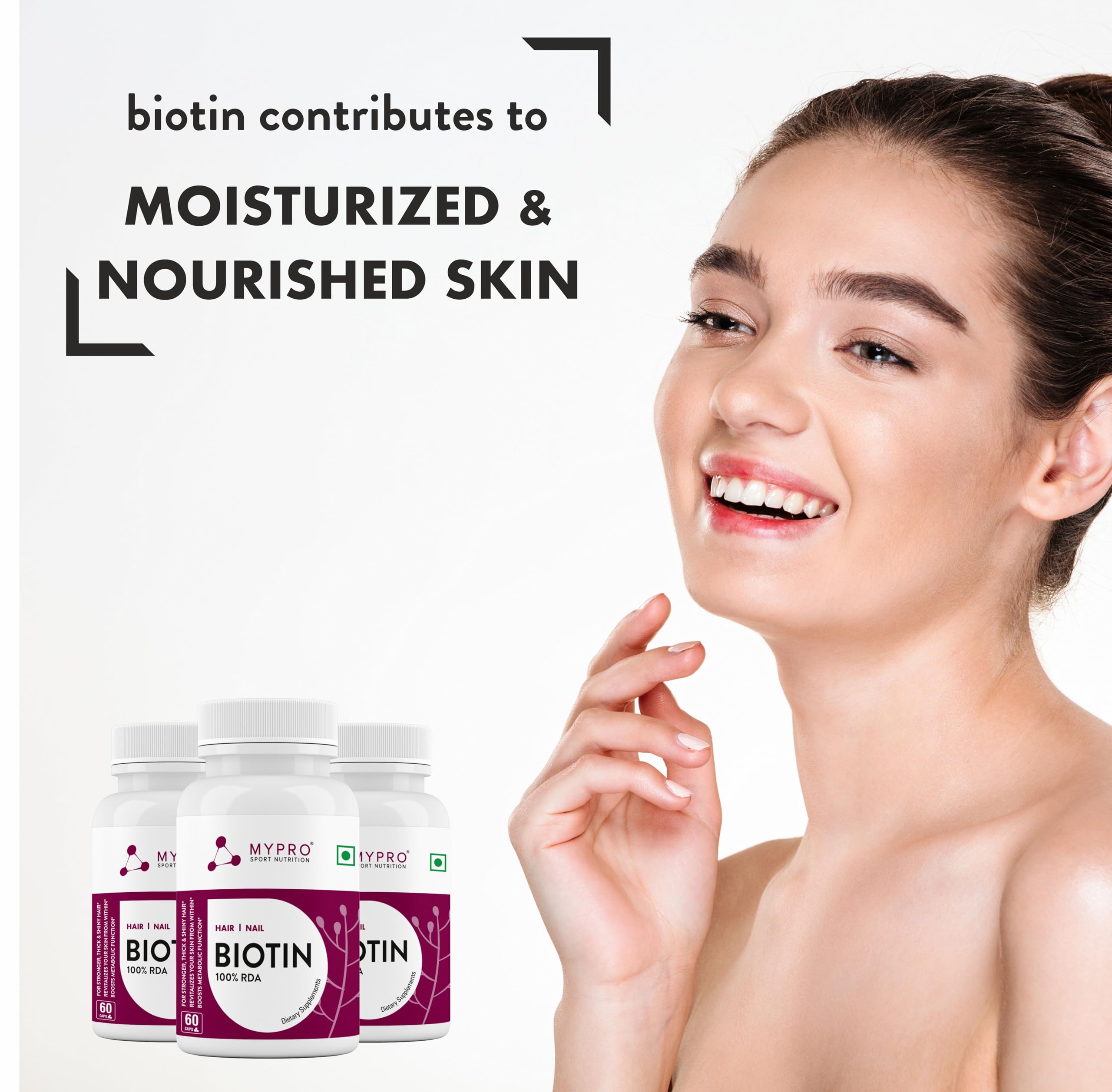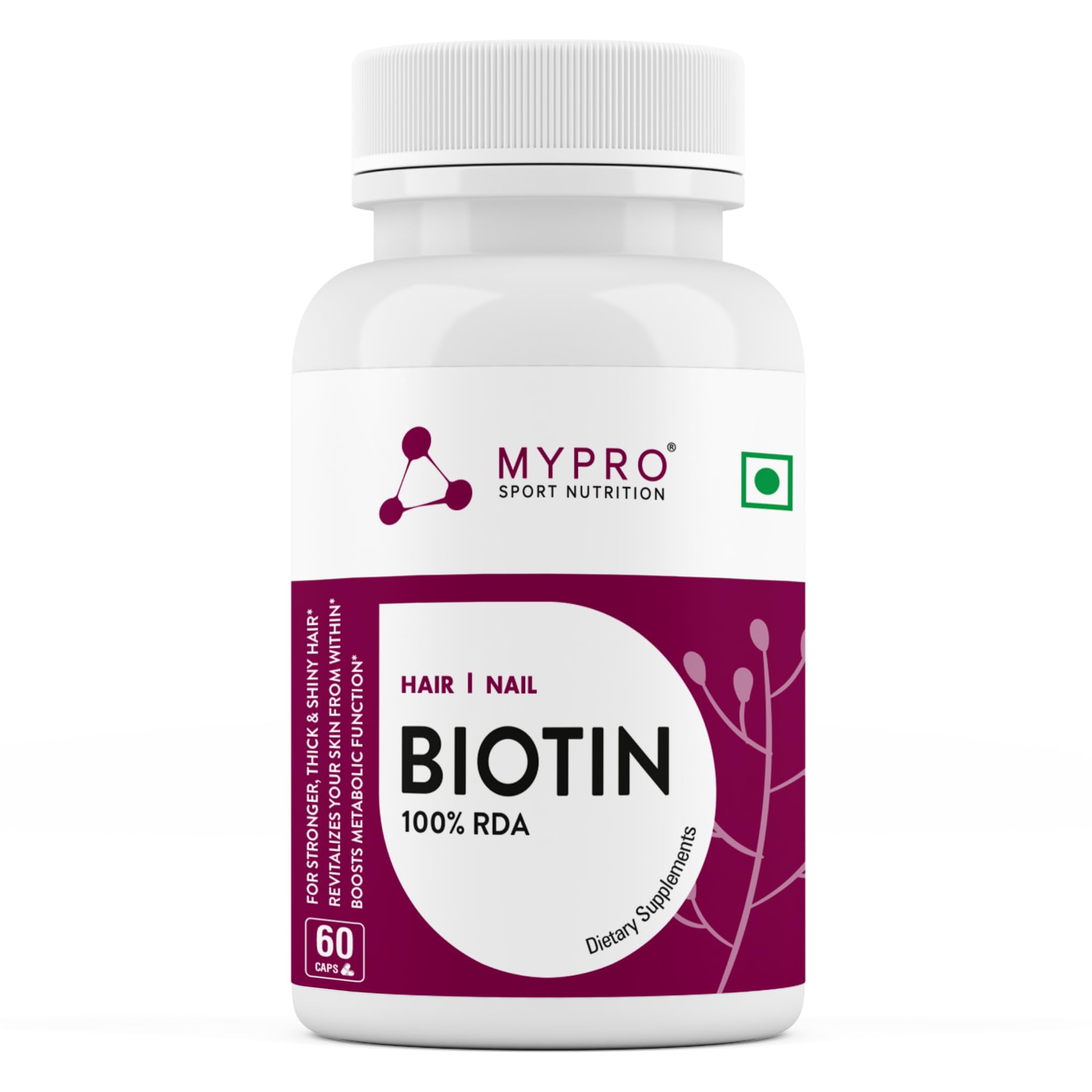 Mypro Sport Nutrition Biotin | Beauty Capsules | Promotes Healthy Hair | Skin & Nails |Helps Support Energy Metabolism | Helps Convert Food Into Energy For Men And Women -60 Capsules