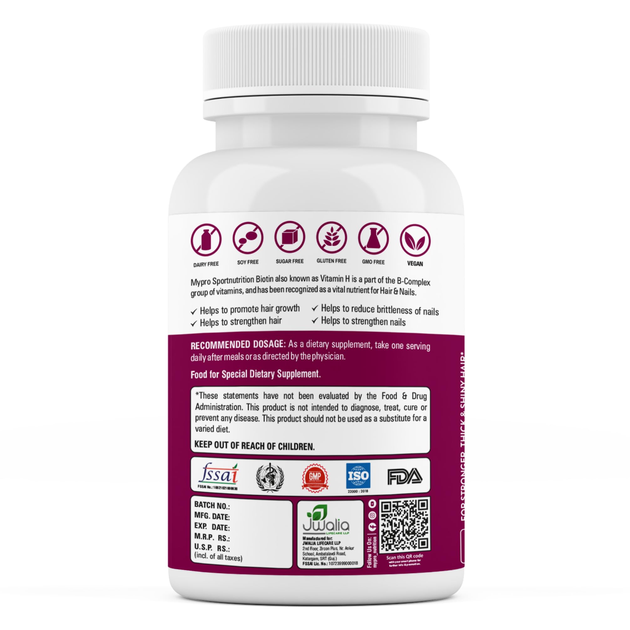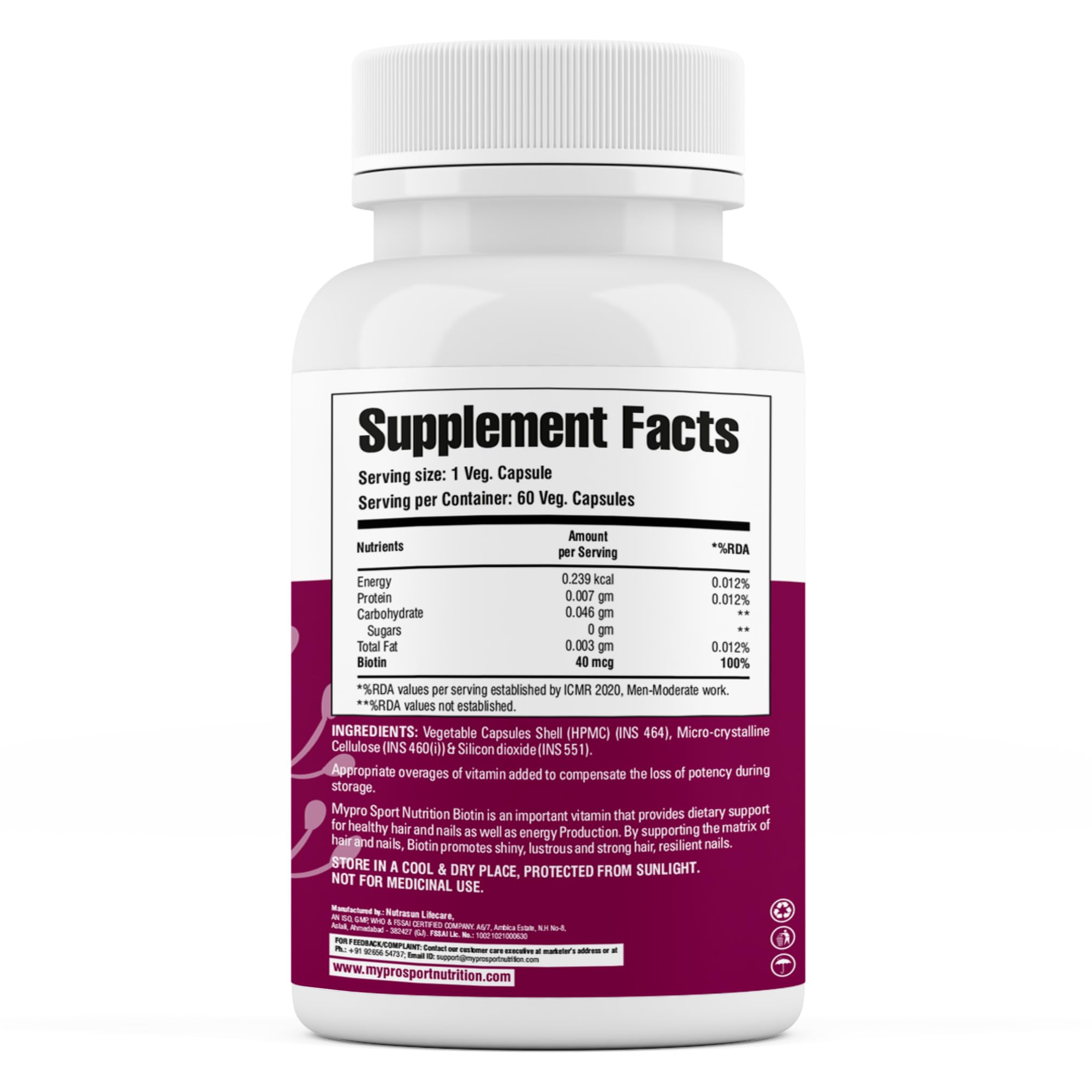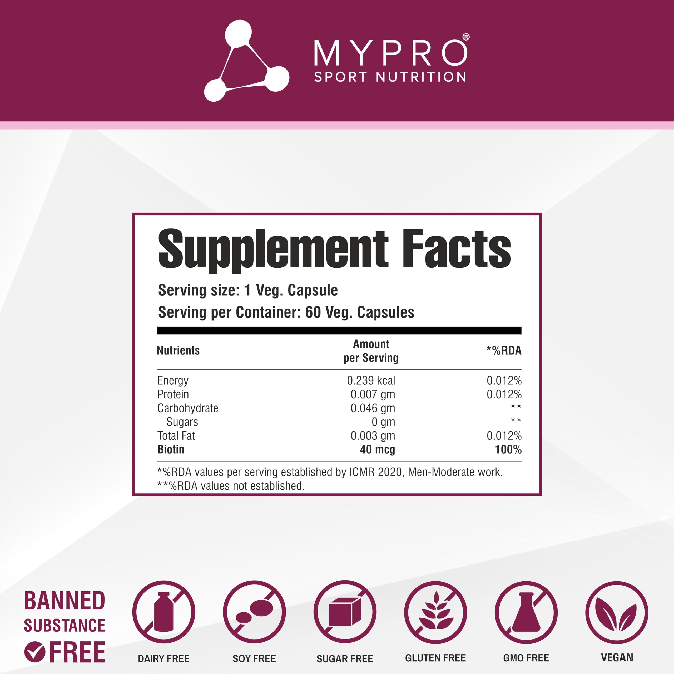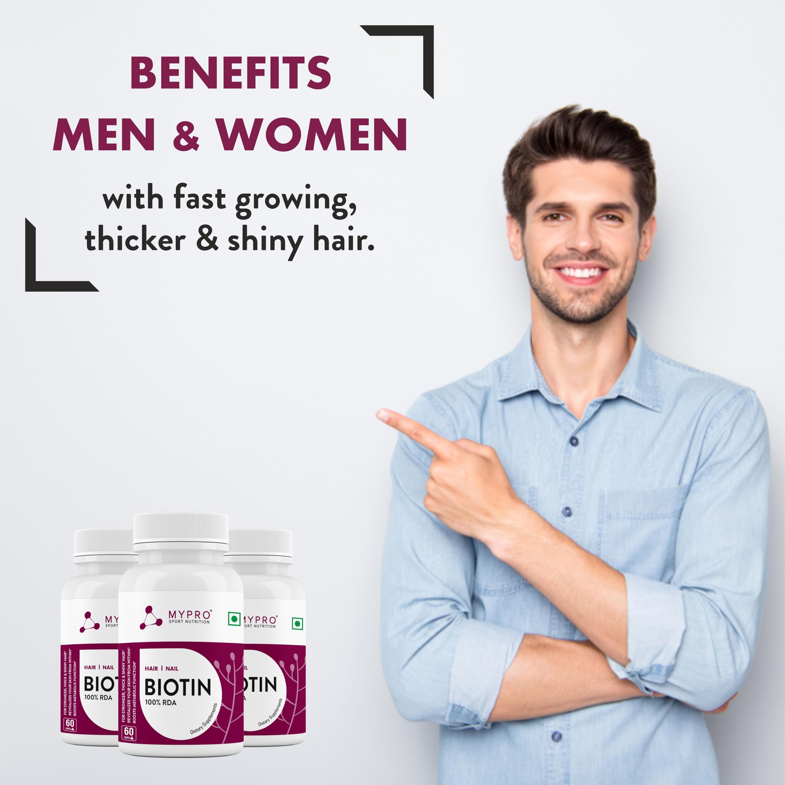 Mypro Sport Nutrition Biotin | Beauty Capsules | Promotes Healthy Hair | Skin & Nails |Helps Support Energy Metabolism | Helps Convert Food Into Energy For Men And Women -60 Capsules