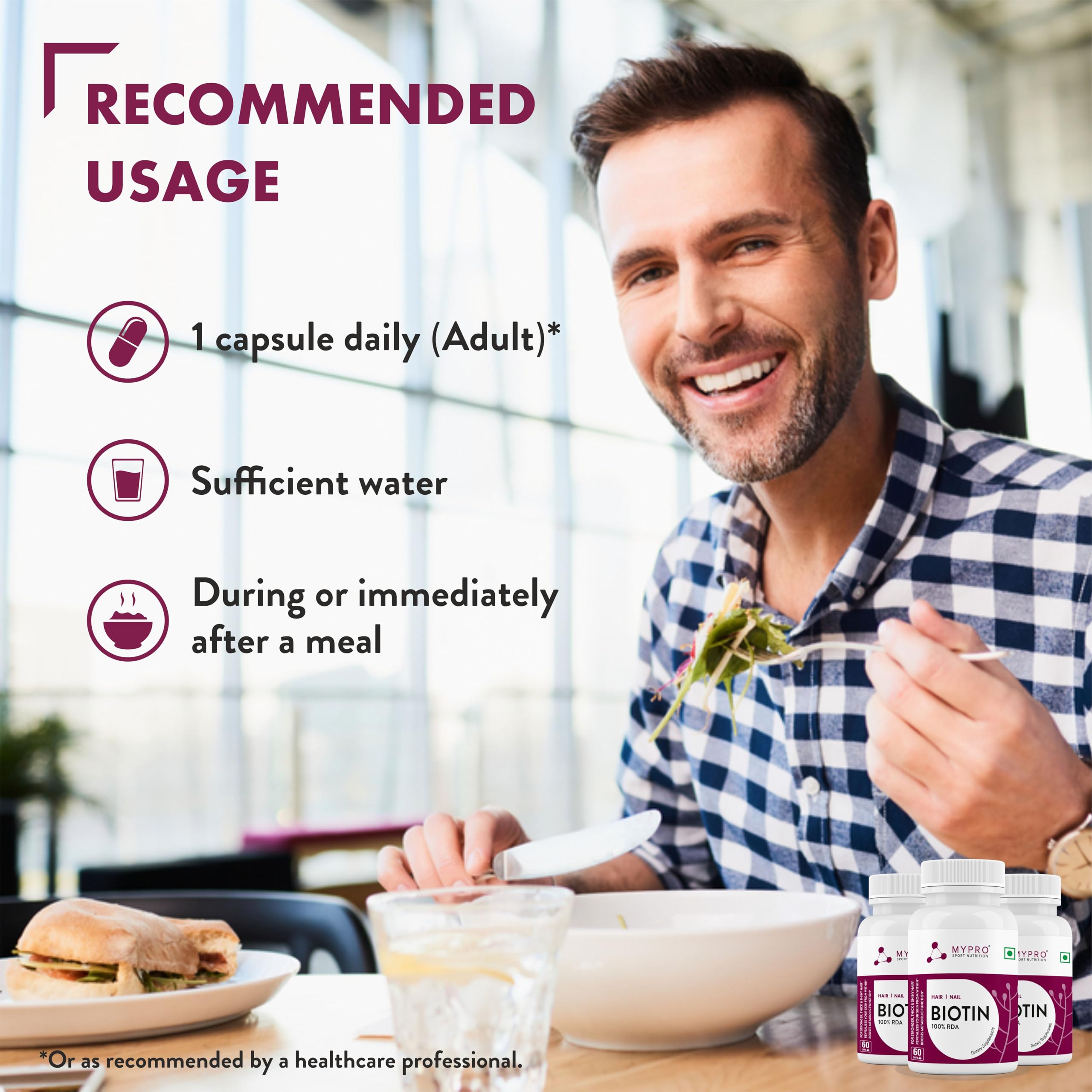 HomeHealth & PersonalDiet & NutritionHealth SupplementsMypro Sport Nutrition Biotin | Beauty Capsules | Promotes Healthy Hair | Skin & Nails |Helps Support Energy Metabolism | Helps Convert Food Into Energy For Men And Women -60 Capsules