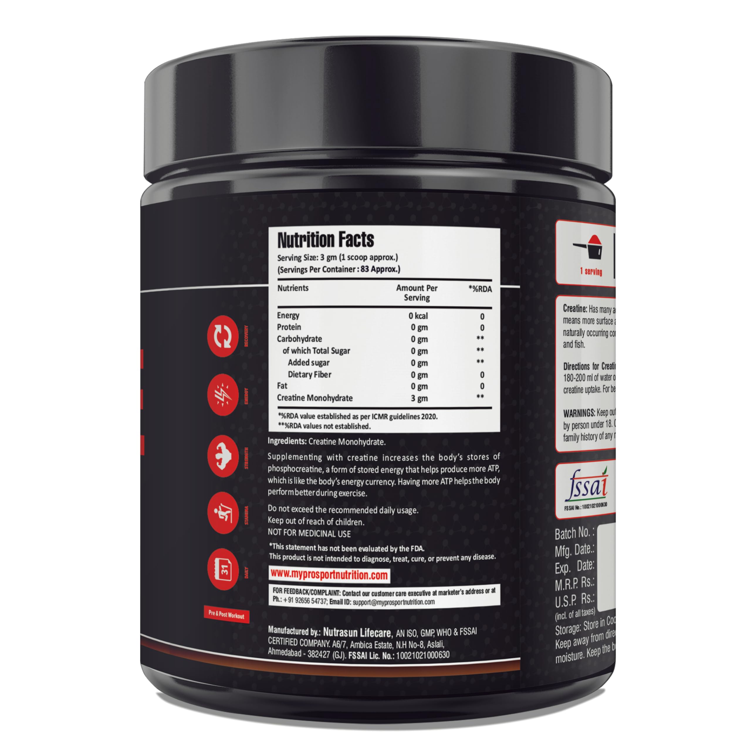 Mypro Sport Nutrition Micronized Creatine-83 Serving (250 Gm) Promote Rapid Recovery-Increase Strength-Reduce Fatigue-Lean Muscle Building-100% Pure Creatine-Supports Muscle Growth-Unflavored