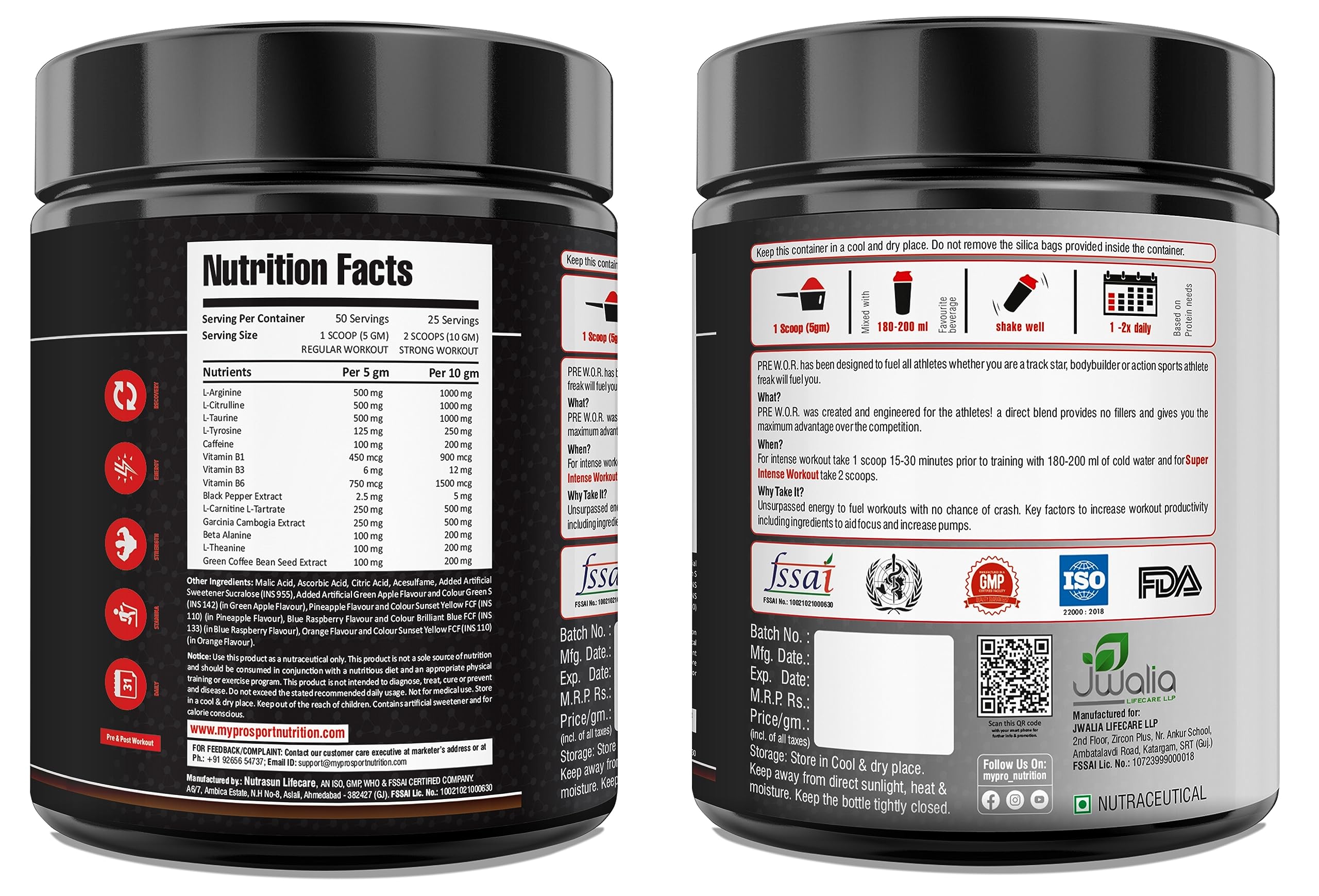 Mypro Sport Nutrition Pre-Workout Powder-50-Servings-250 Gm -Increase Energy & Stamina-Intense Strength-Recover Faster-Energy Booster-Sharp Focus-Powerful Pumps-For Men&Women (Juicy Orange)