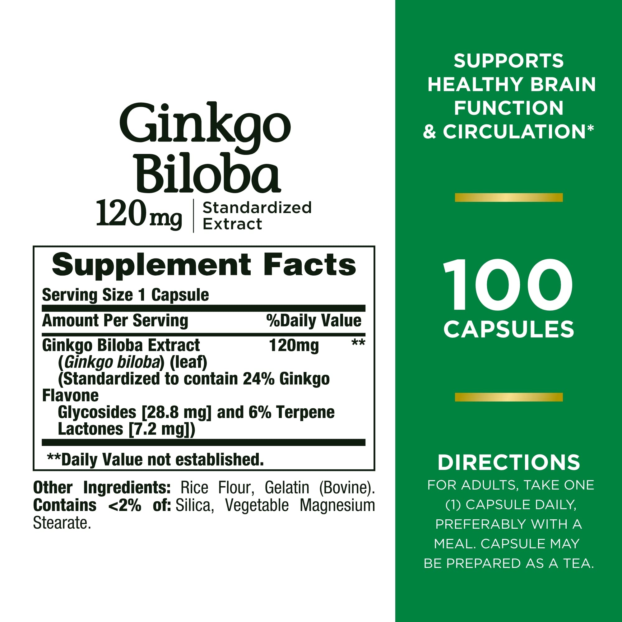 Nature's Bounty Ginkgo Biloba Capsules 120mg, Memory Support Supplement, Supports Brain Function and Mental Alertness, 100 Capsules