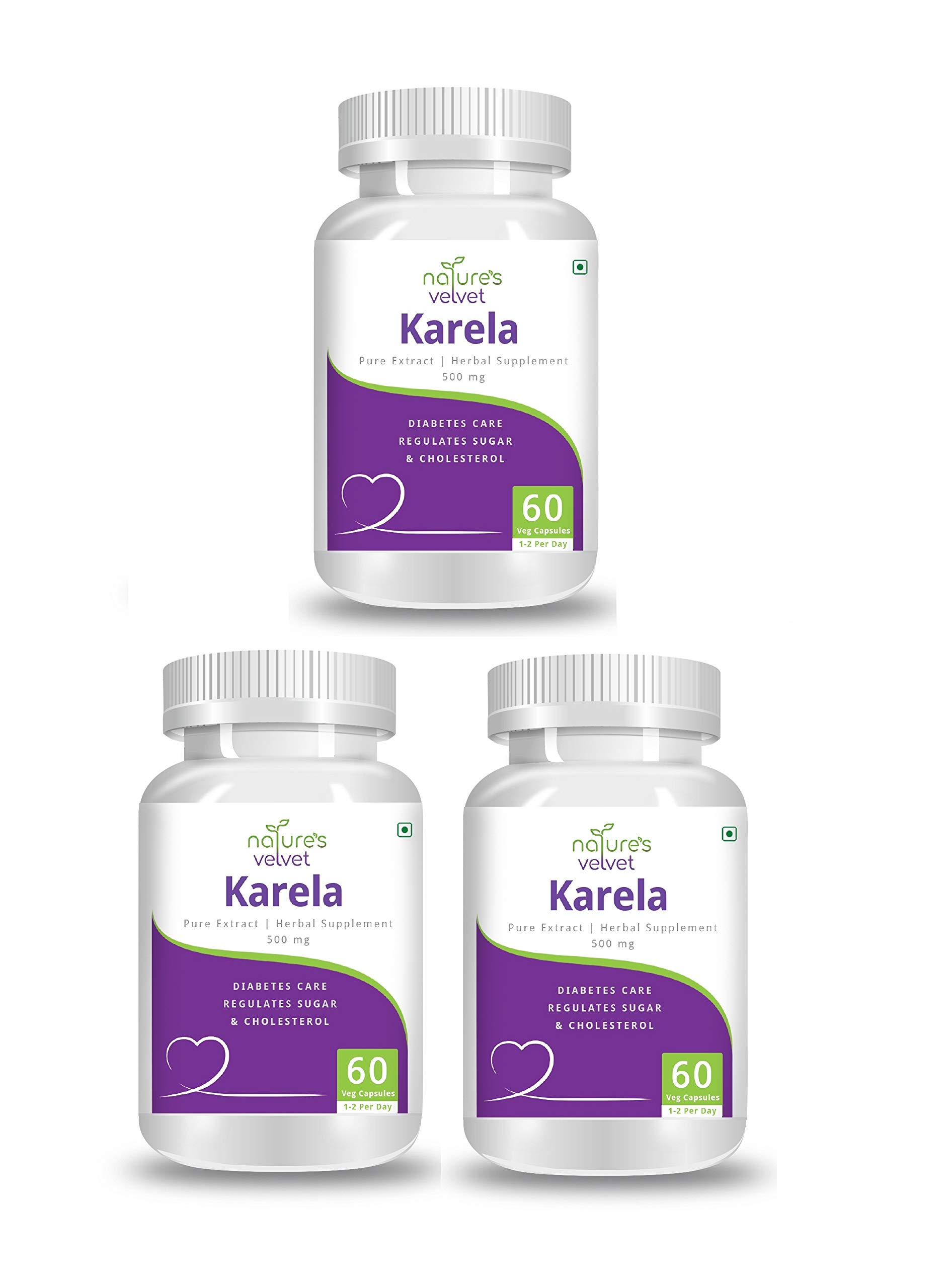 Natures Velvet Lifecare Karela Pure Extract 500 mg, 60 Veggie Capsules - Pack of 3