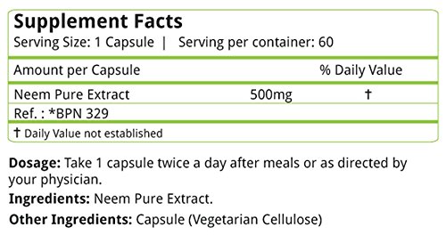 Natures Velvet Lifecare Neem Pure Extract 500 mg, 60 Veggie Capsules - Pack of 1